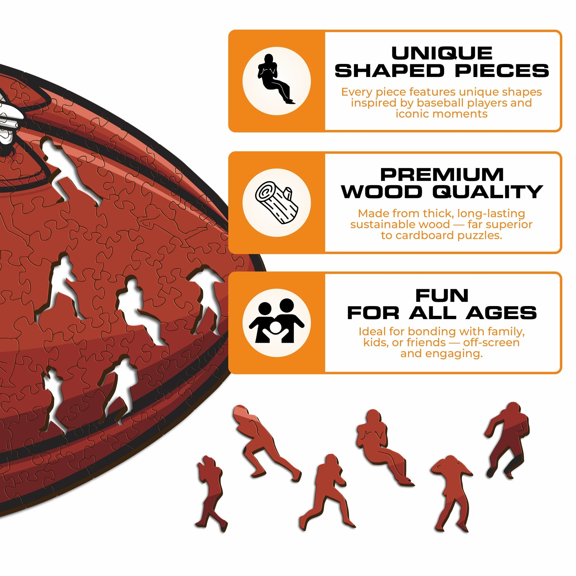 ✓ Each puzzle piece has a unique shape that depicts elements related to football and iconic player poses.