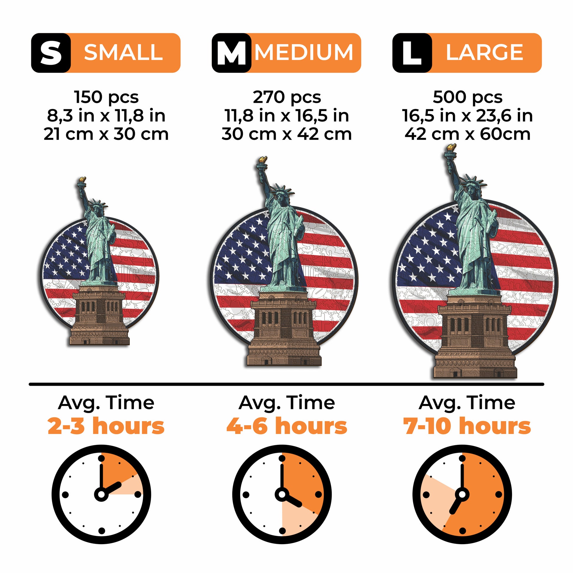 ✓ 1x Statue of Liberty - Official Wooden Box (featuring a printed guide on the front to help you complete the puzzle with ease)