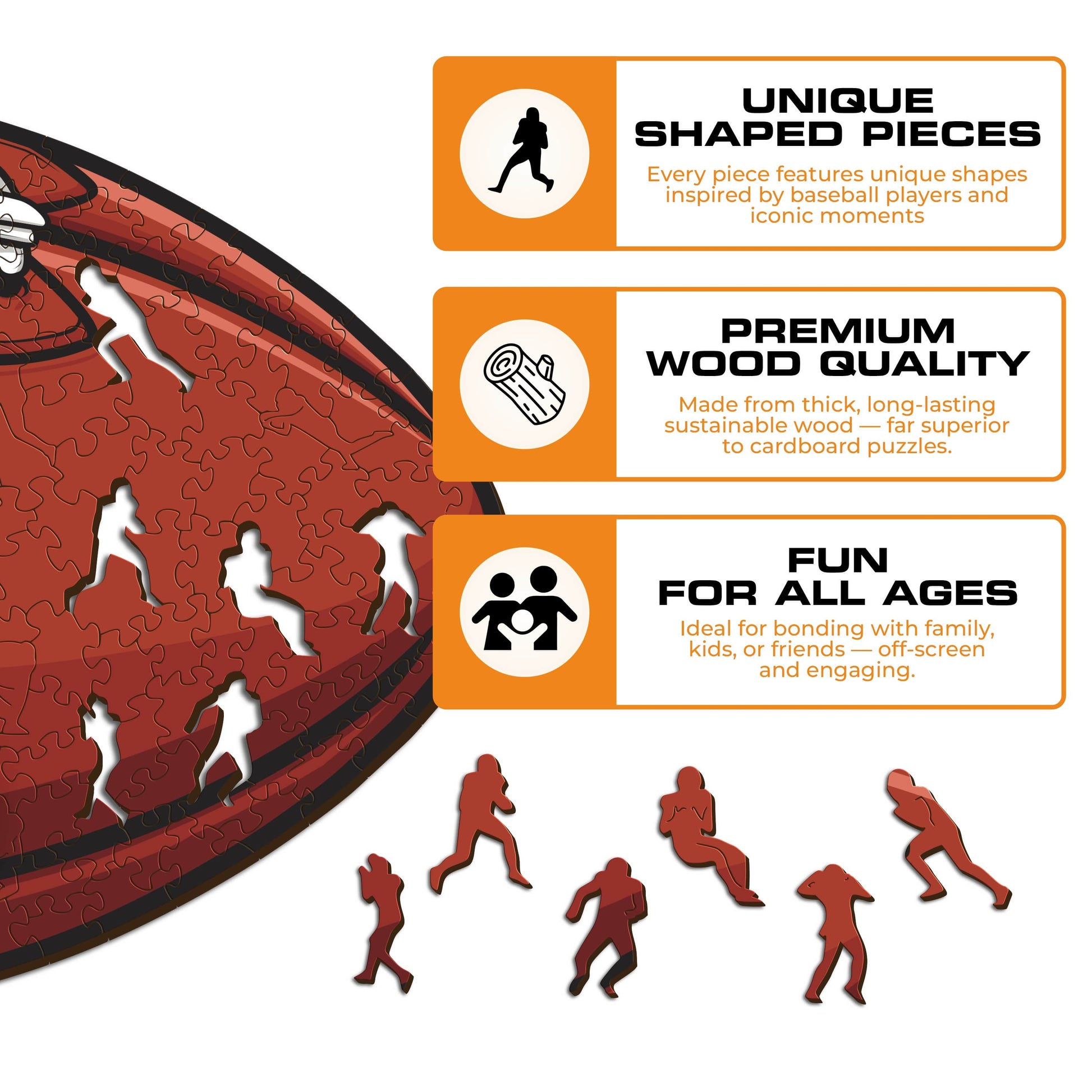 ✓ Each puzzle piece has a unique shape that depicts elements related to football and iconic player poses.