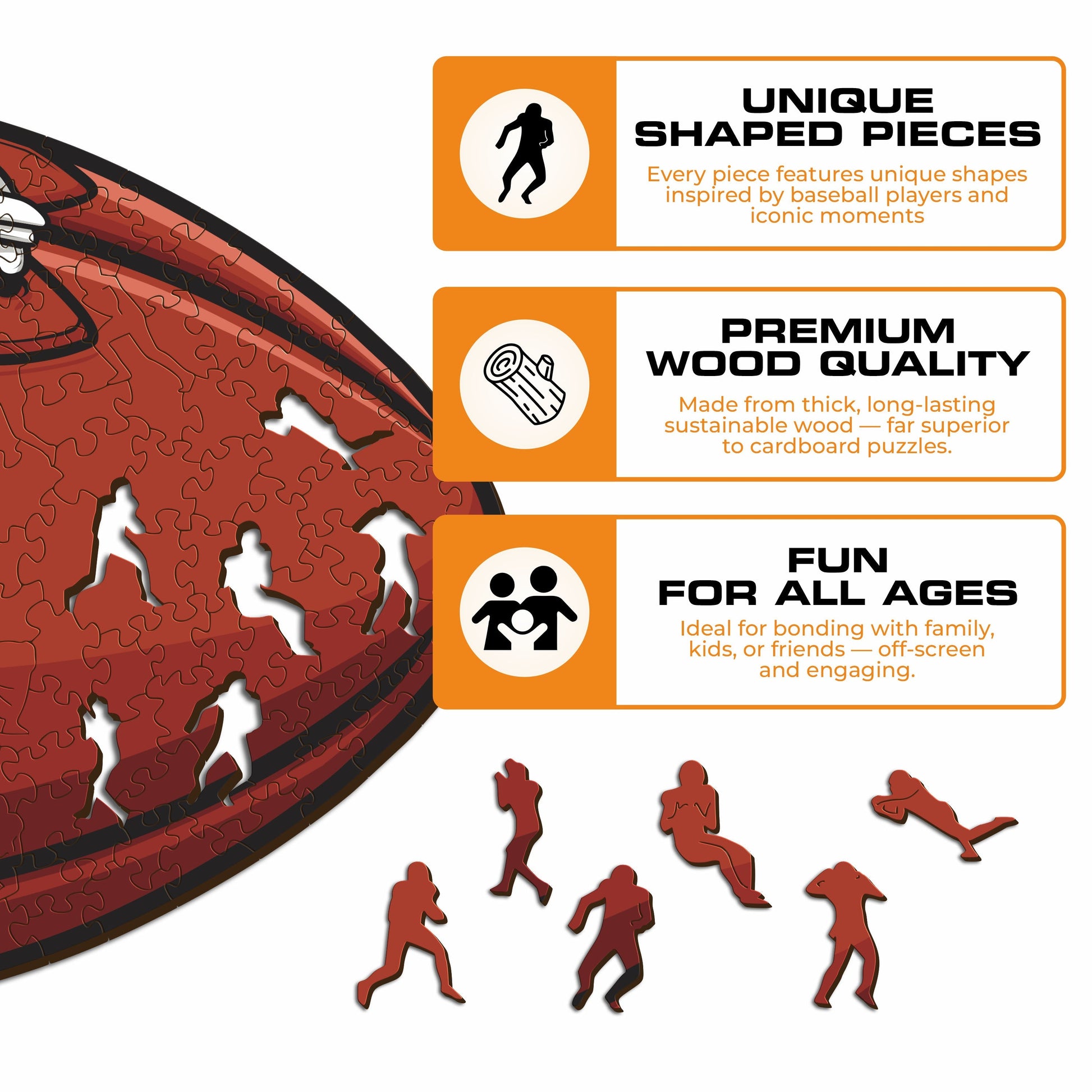 ✓ Each puzzle piece has a unique shape that depicts elements related to football and iconic player poses.