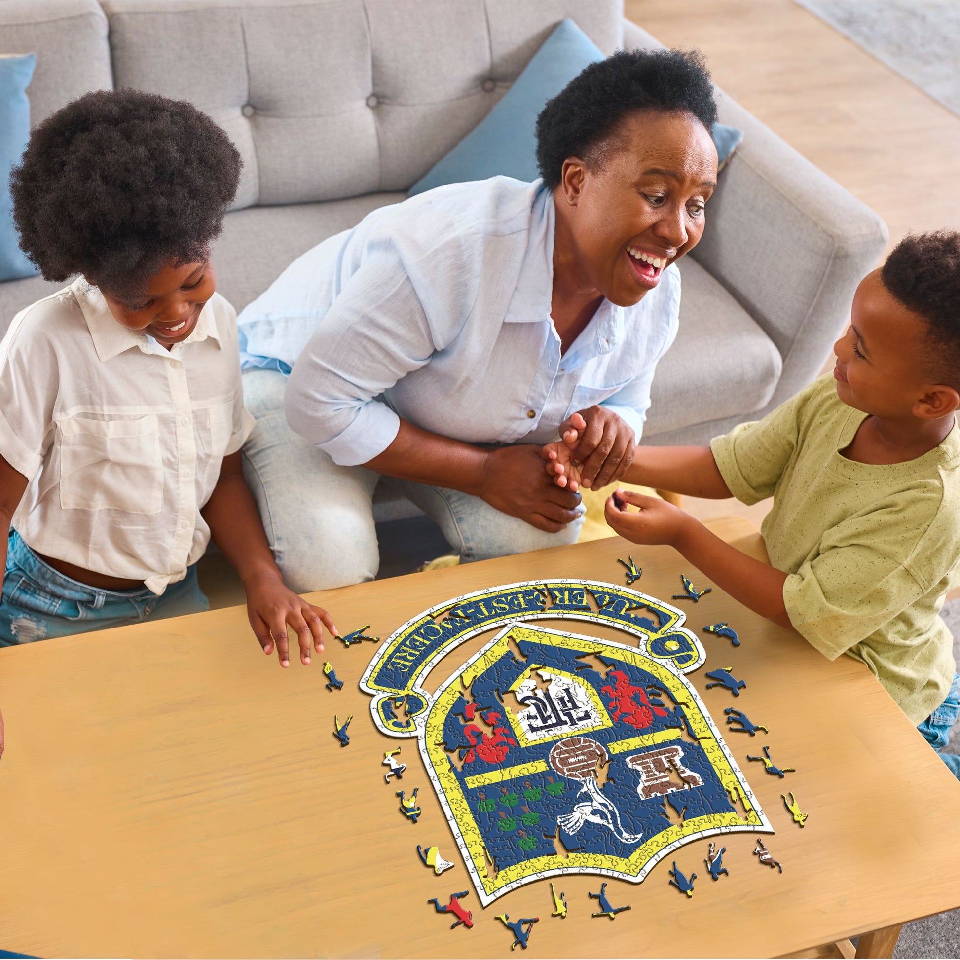 - 100% sustainable wooden puzzle, 1/5in (0.3cm) thick.