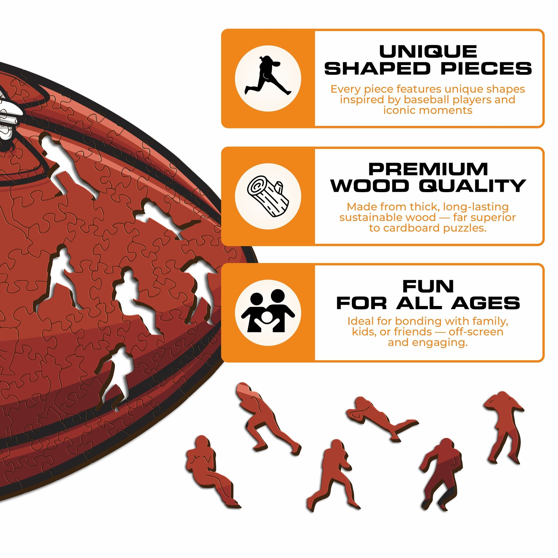 ✓ Each puzzle piece has a unique shape that depicts elements related to football and iconic player poses.
