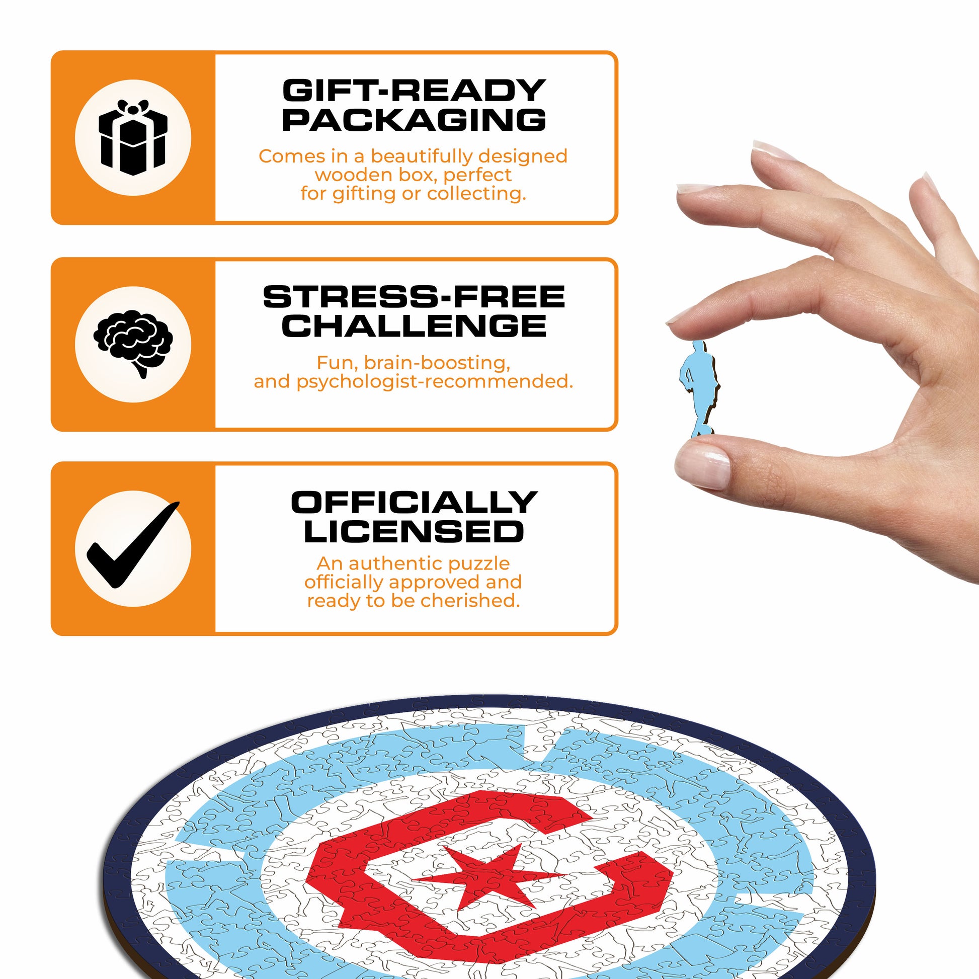 - 100%持続可能な木製パズル、 厚さ1/5インチ(0.3cm) 。