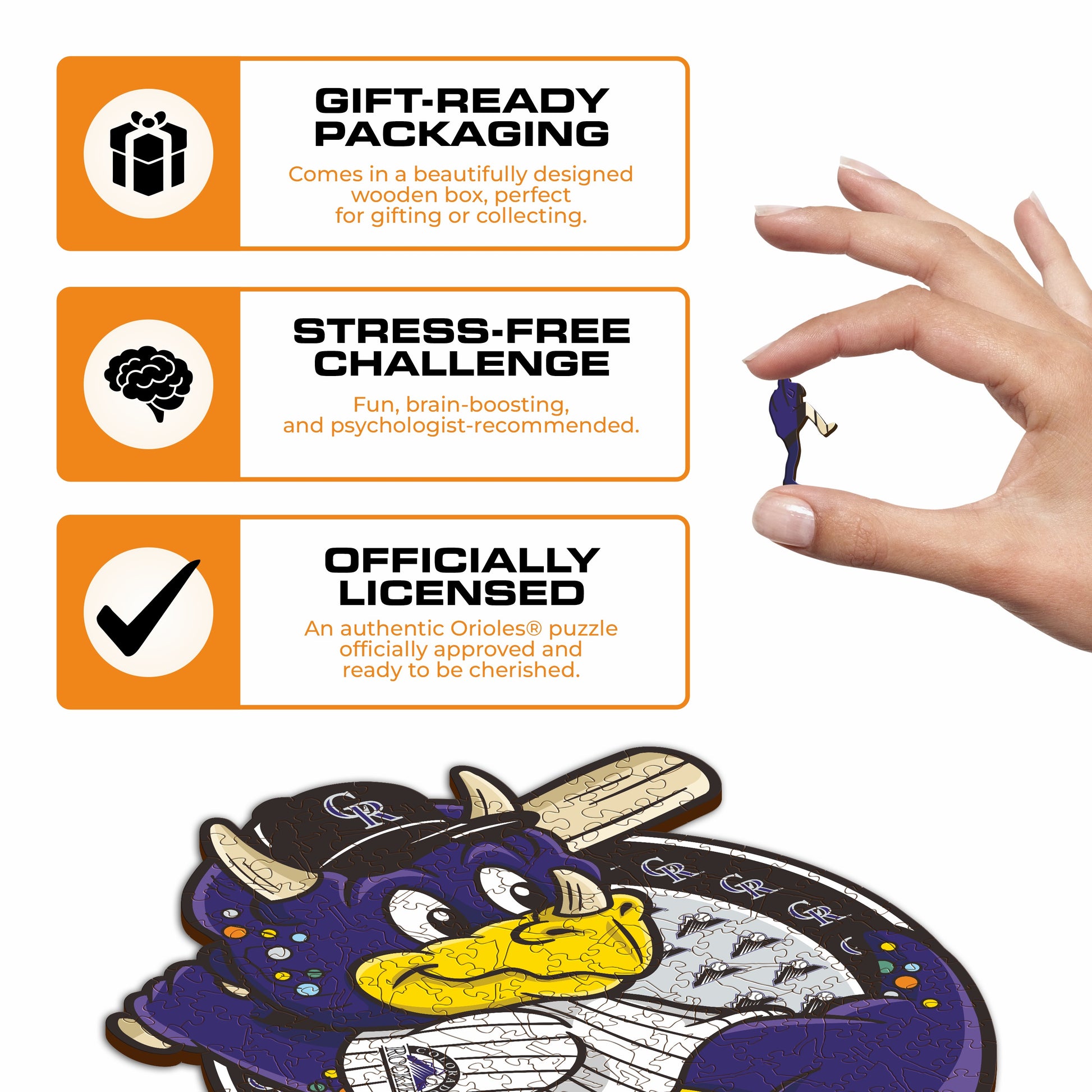 ✓コロラドロッキーズ™ マスコット 1個- 公式木製パズル