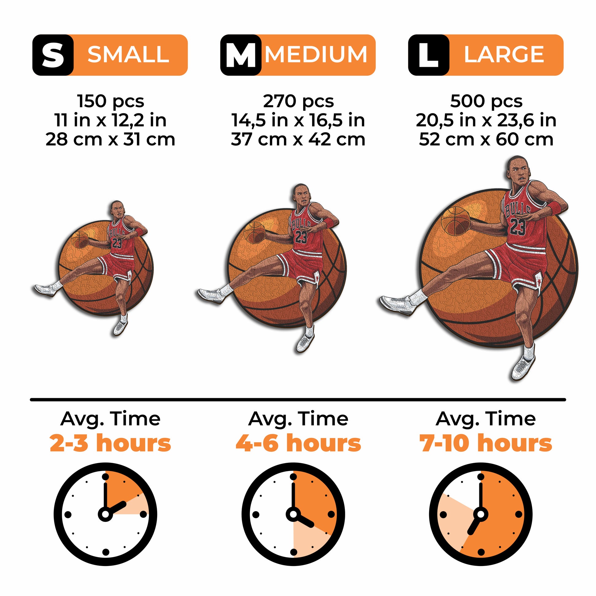 ✓各パズルピースは、バスケットボールに関連する要素と象徴的な選手のポーズを表現したユニークな形状をしています。
