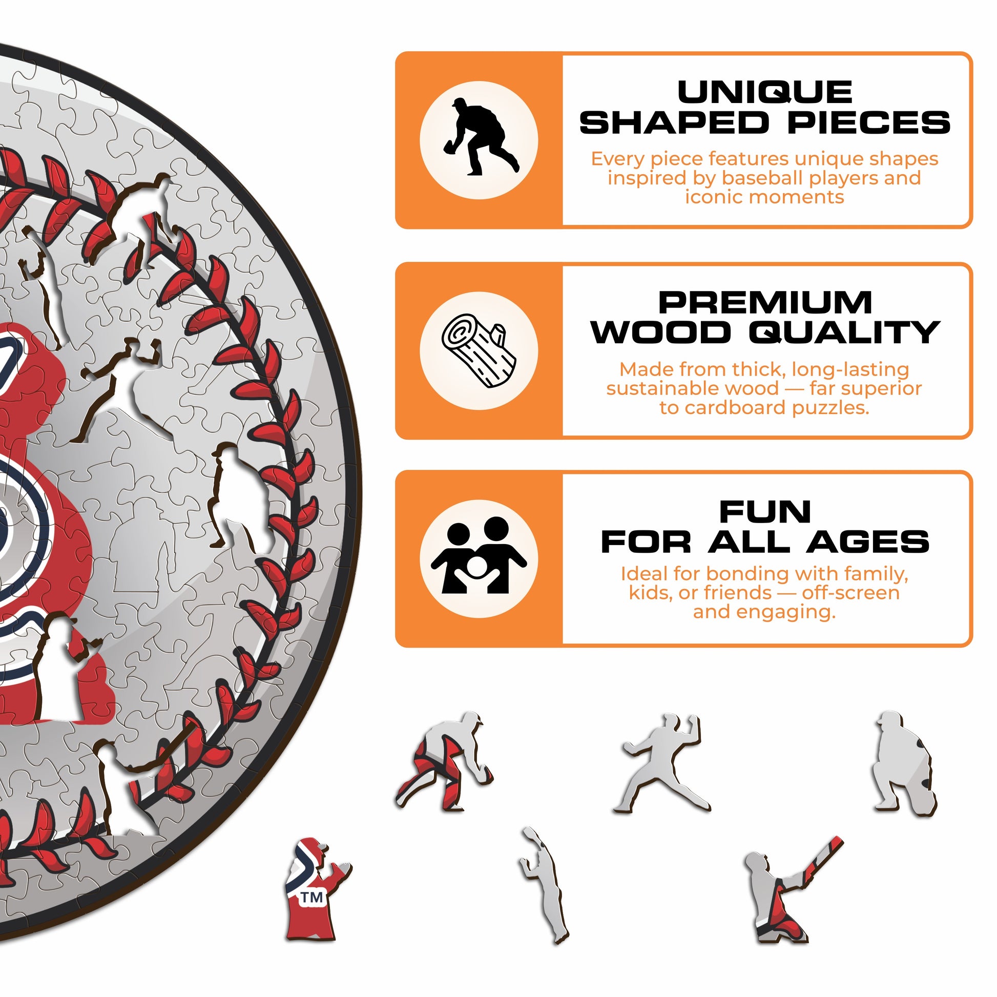 ✓各パズルピースは、野球に関連する要素と象徴的な選手のポーズを描いたユニークな形状をしています。