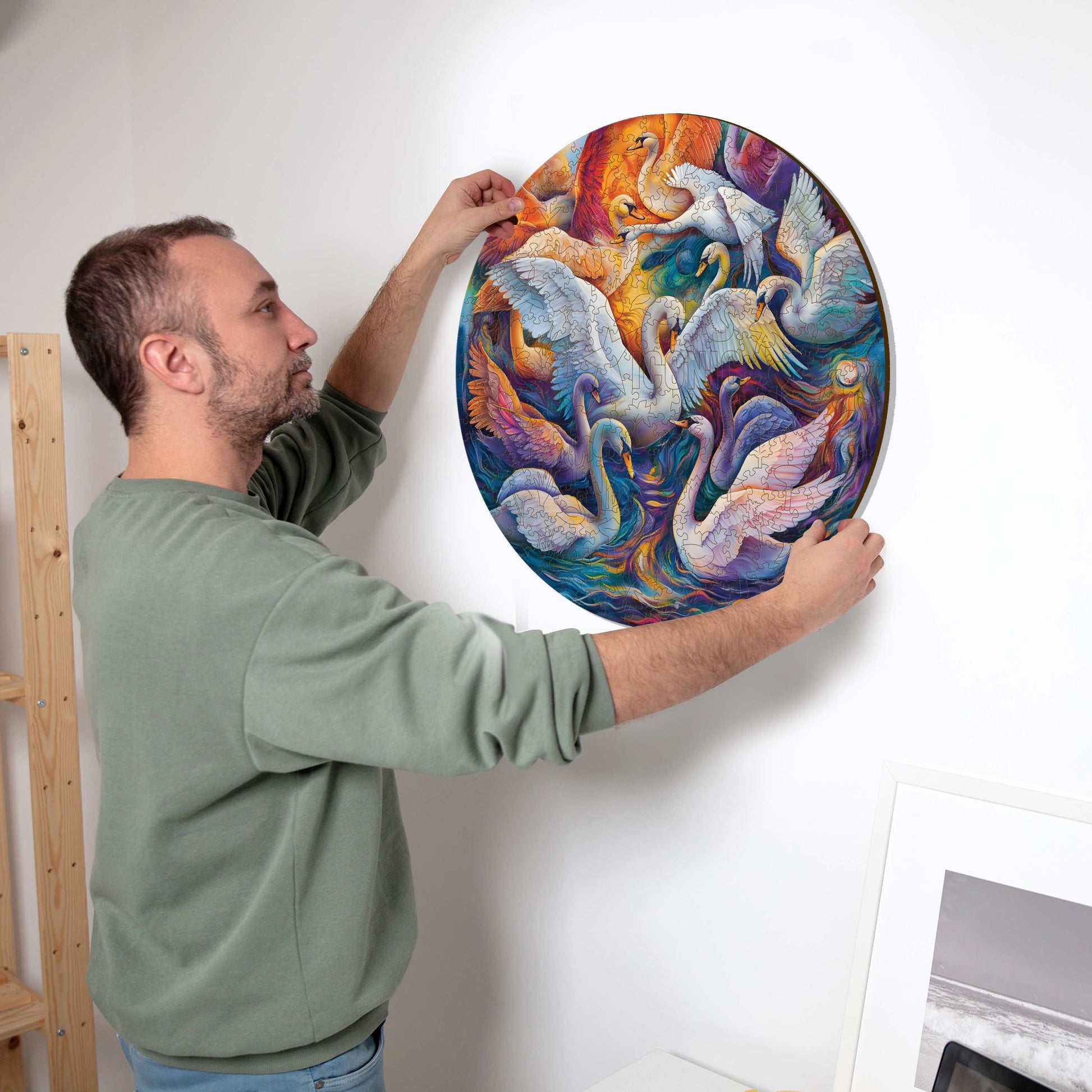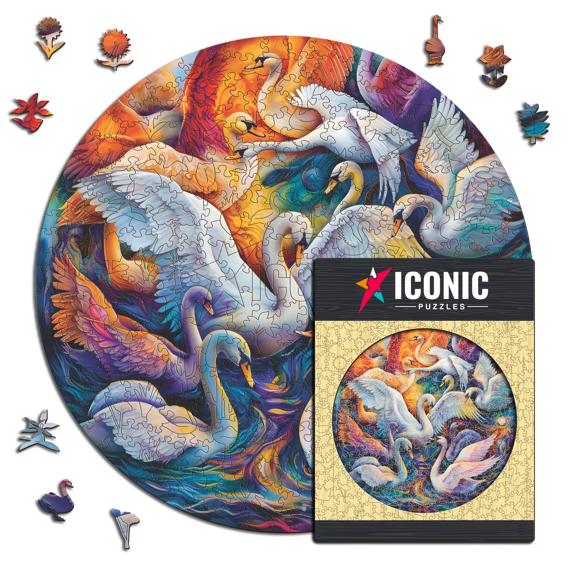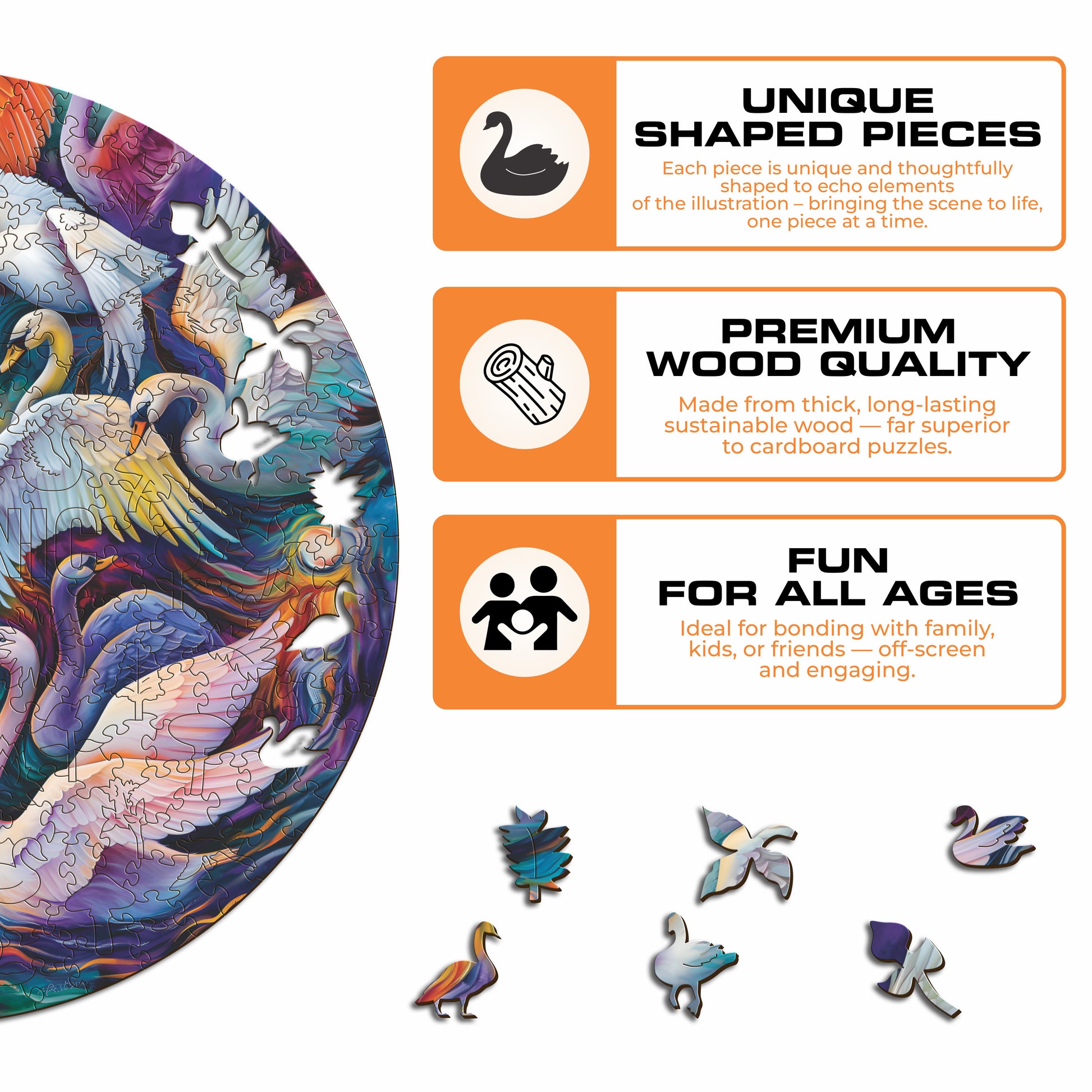✓各パズルピースはユニークな形をしています 白鳥と自然に関連する要素を描いた作品。