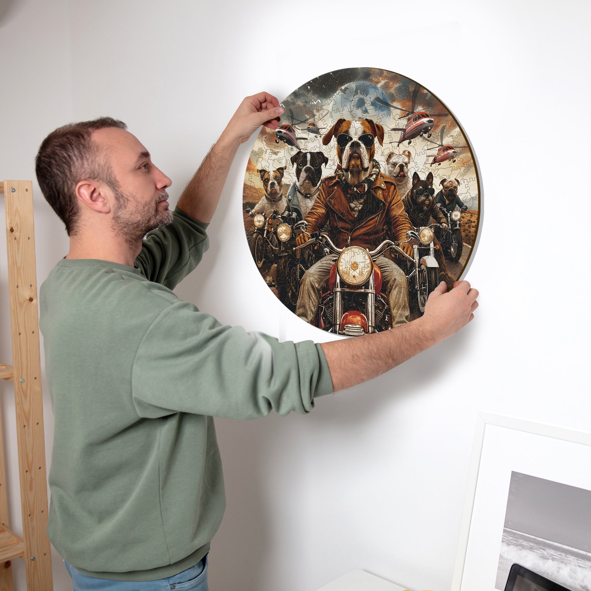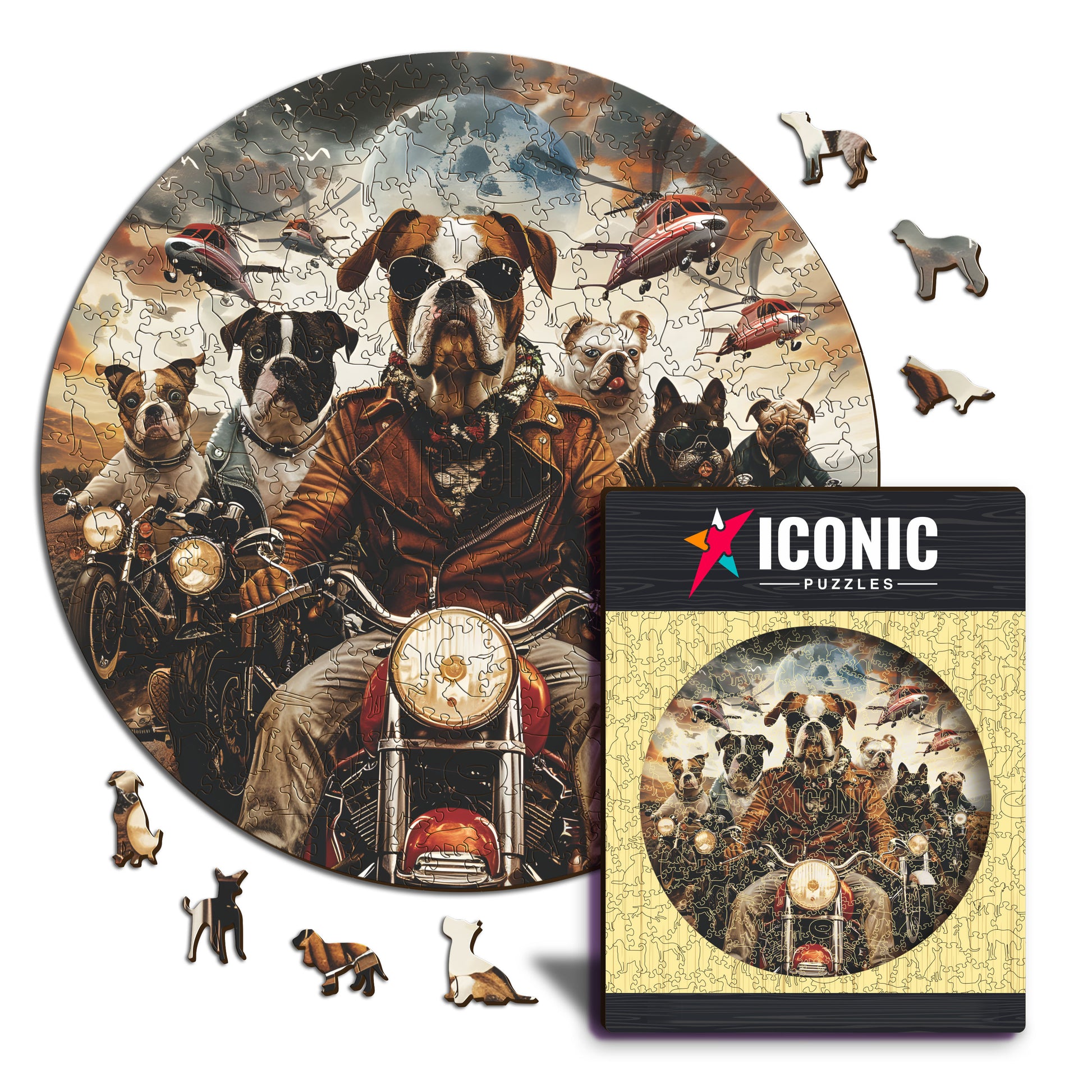 モーターサイクリスト犬 - 木製パズル