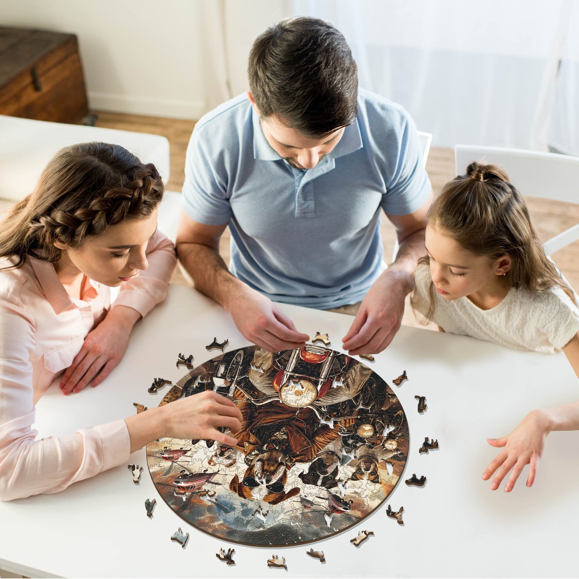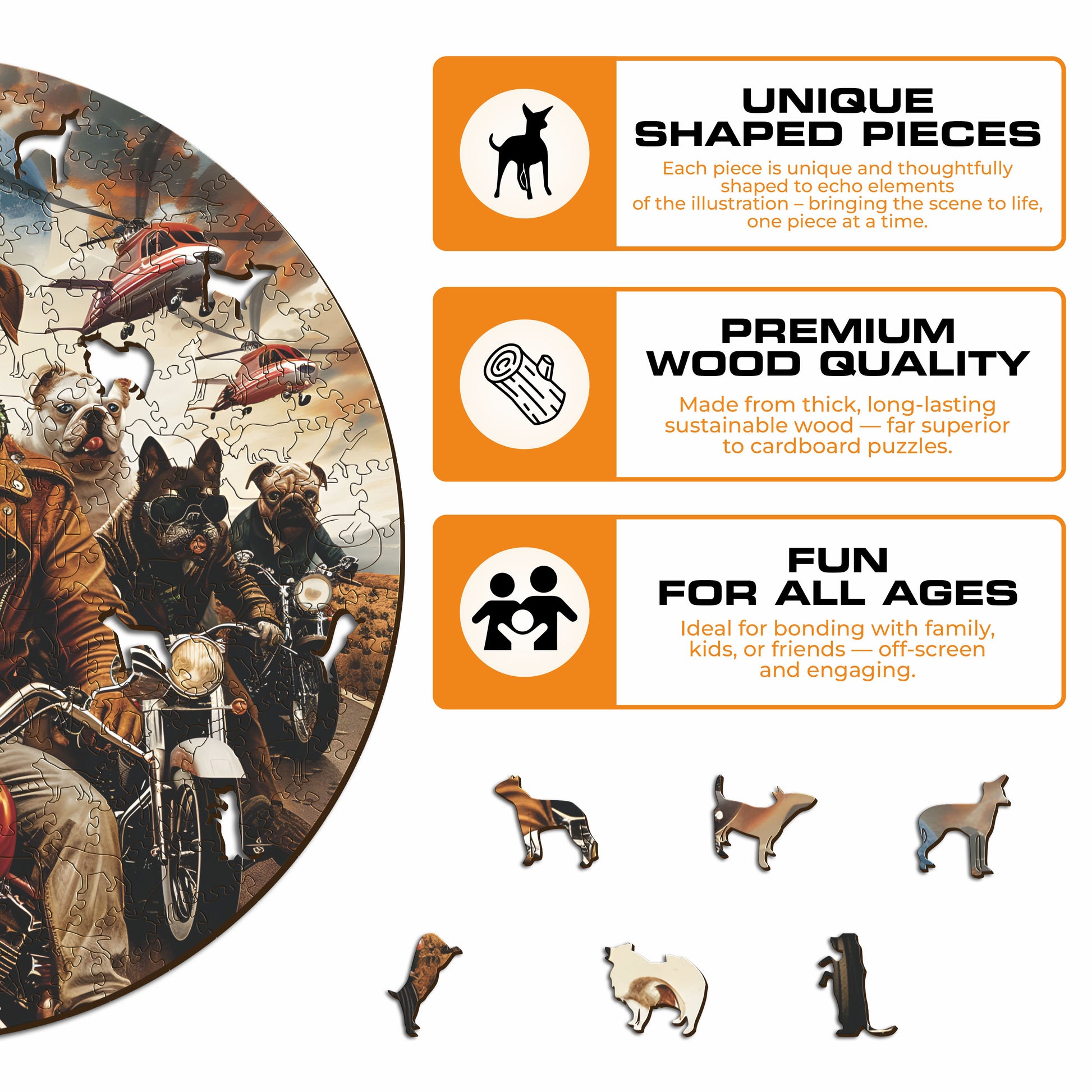 ✓モーターサイクリスト犬 - 木製パズル x 1
