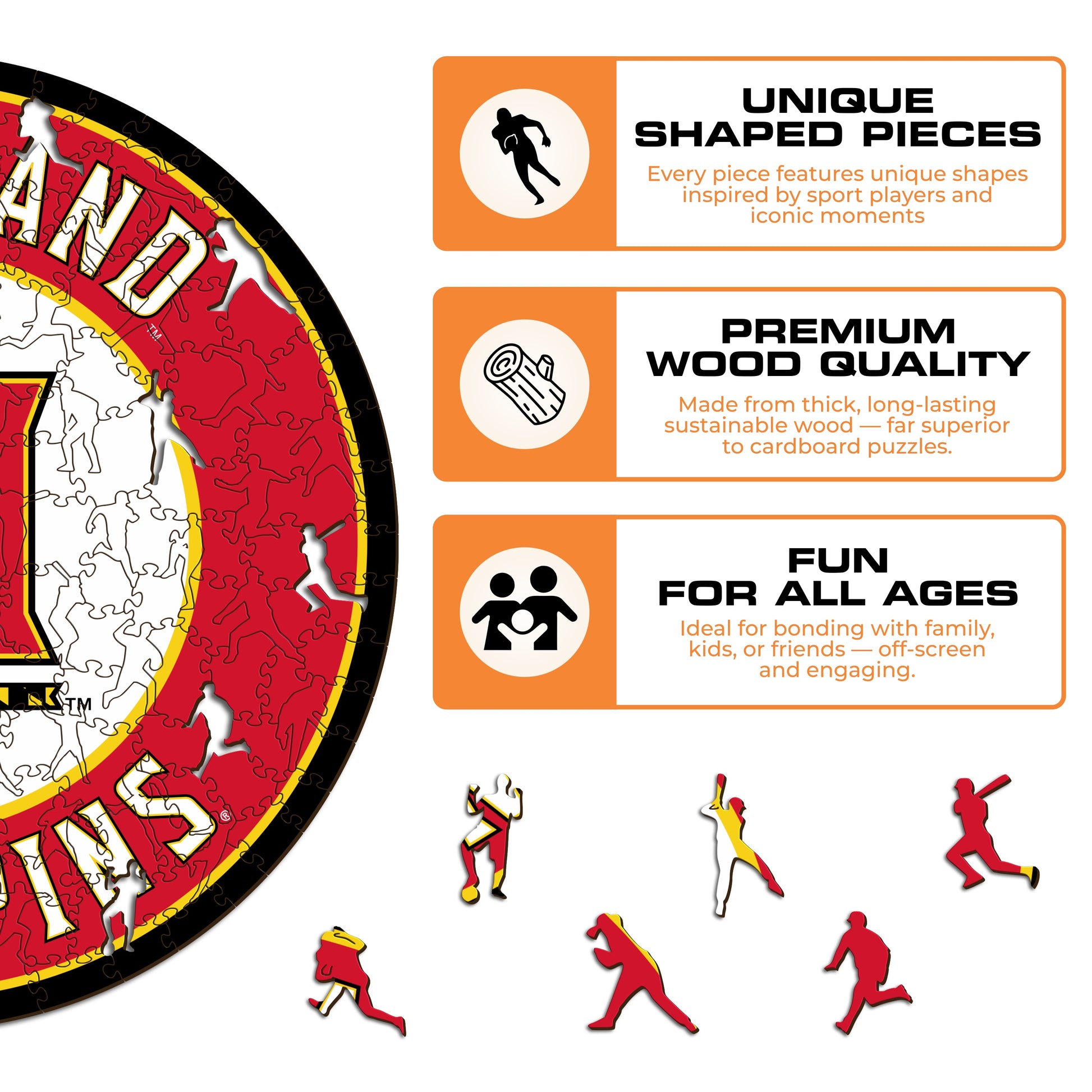 ✓各パズルピースは、スポーツに関連する要素と象徴的な選手のポーズを描いたユニークな形状をしています。