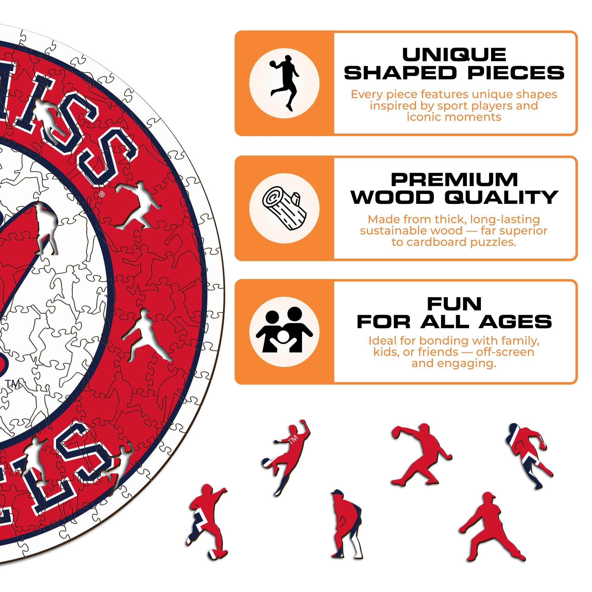 ✓各パズルピースは、スポーツに関連する要素と象徴的な選手のポーズを描いたユニークな形状をしています。