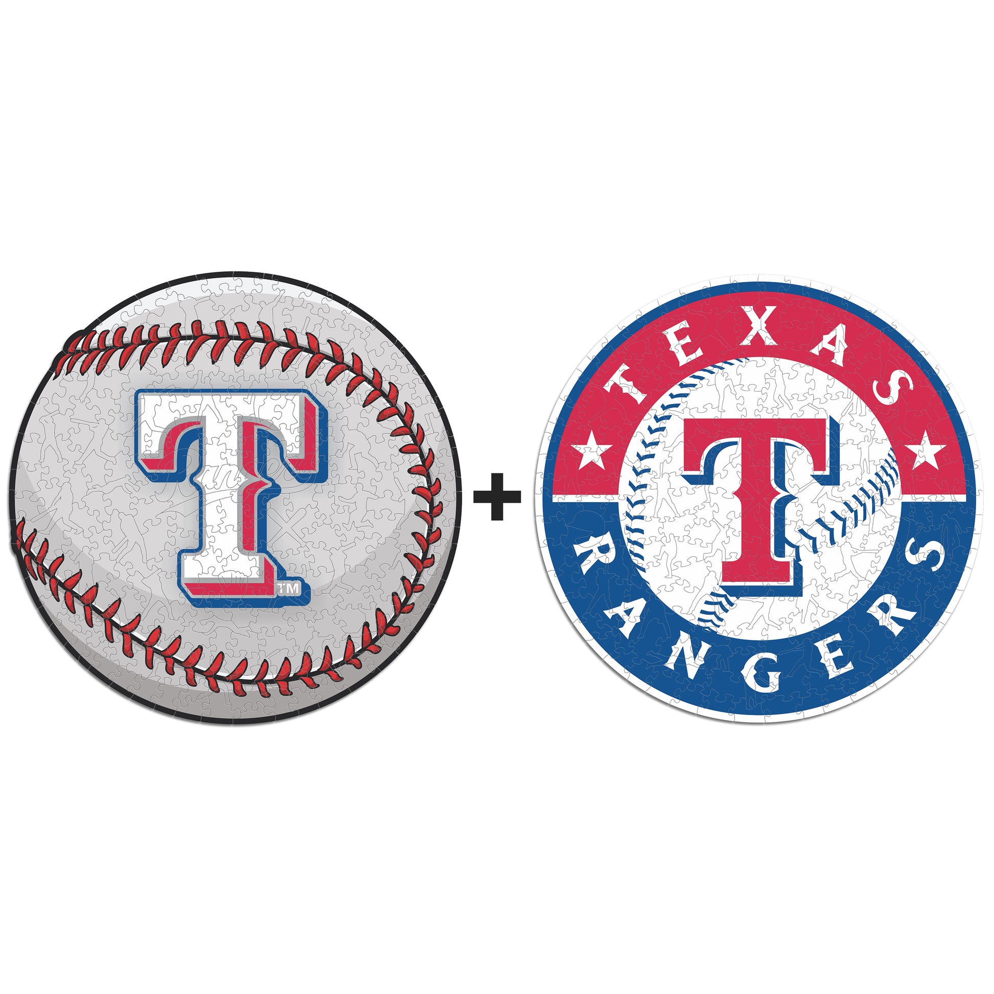 2x (Texas Rangers™ Ball + Primary Logo) Official Wooden Puzzles