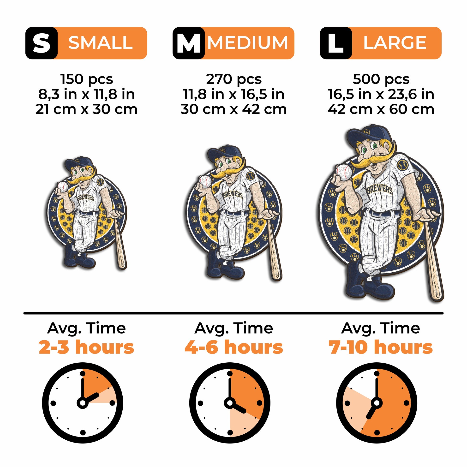 3x (Milwaukee Brewers™ Logo + Mascot + Baseball) Official Wooden Puzzles