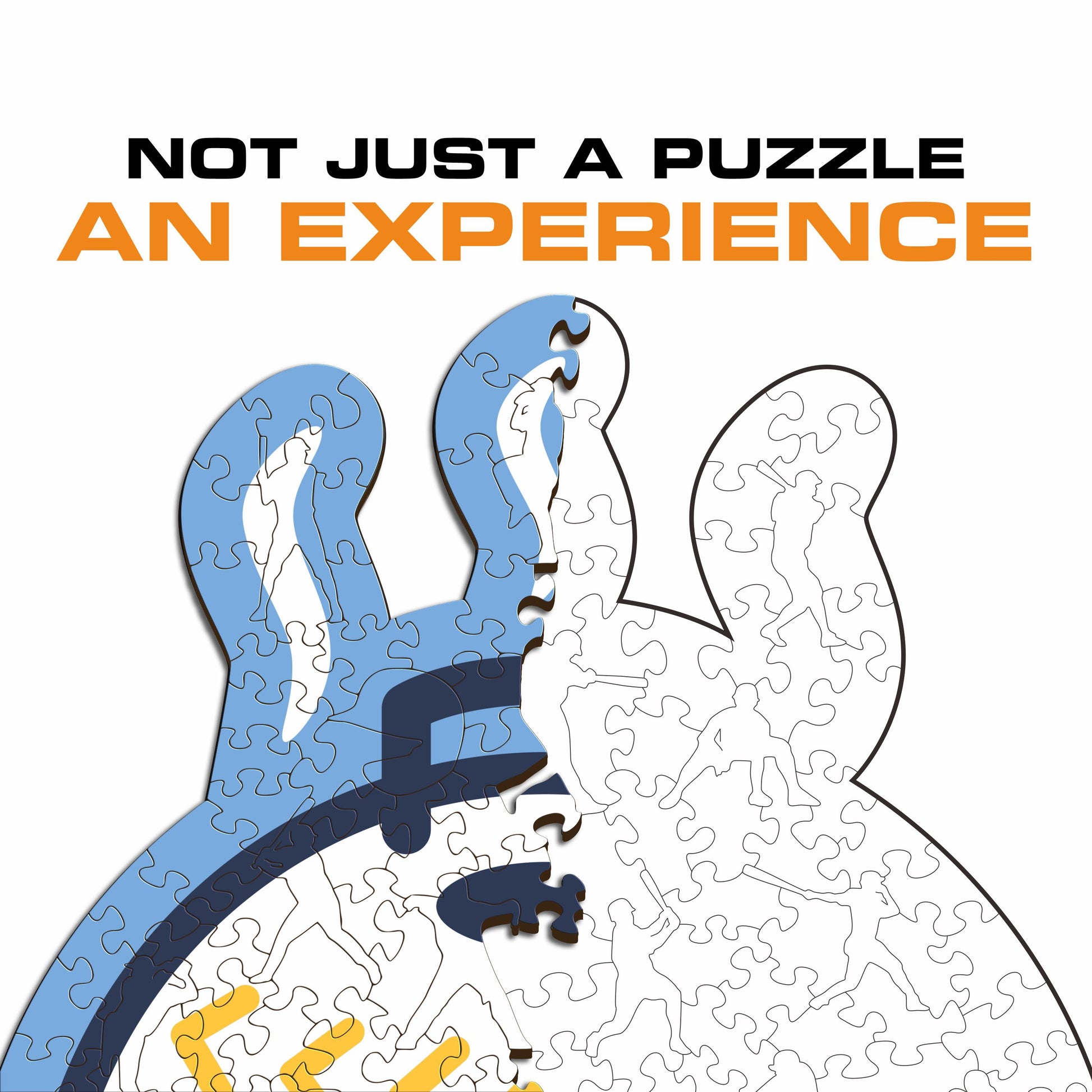Each puzzle piece has a unique shape that depicts elements related to baseball and iconic player poses.