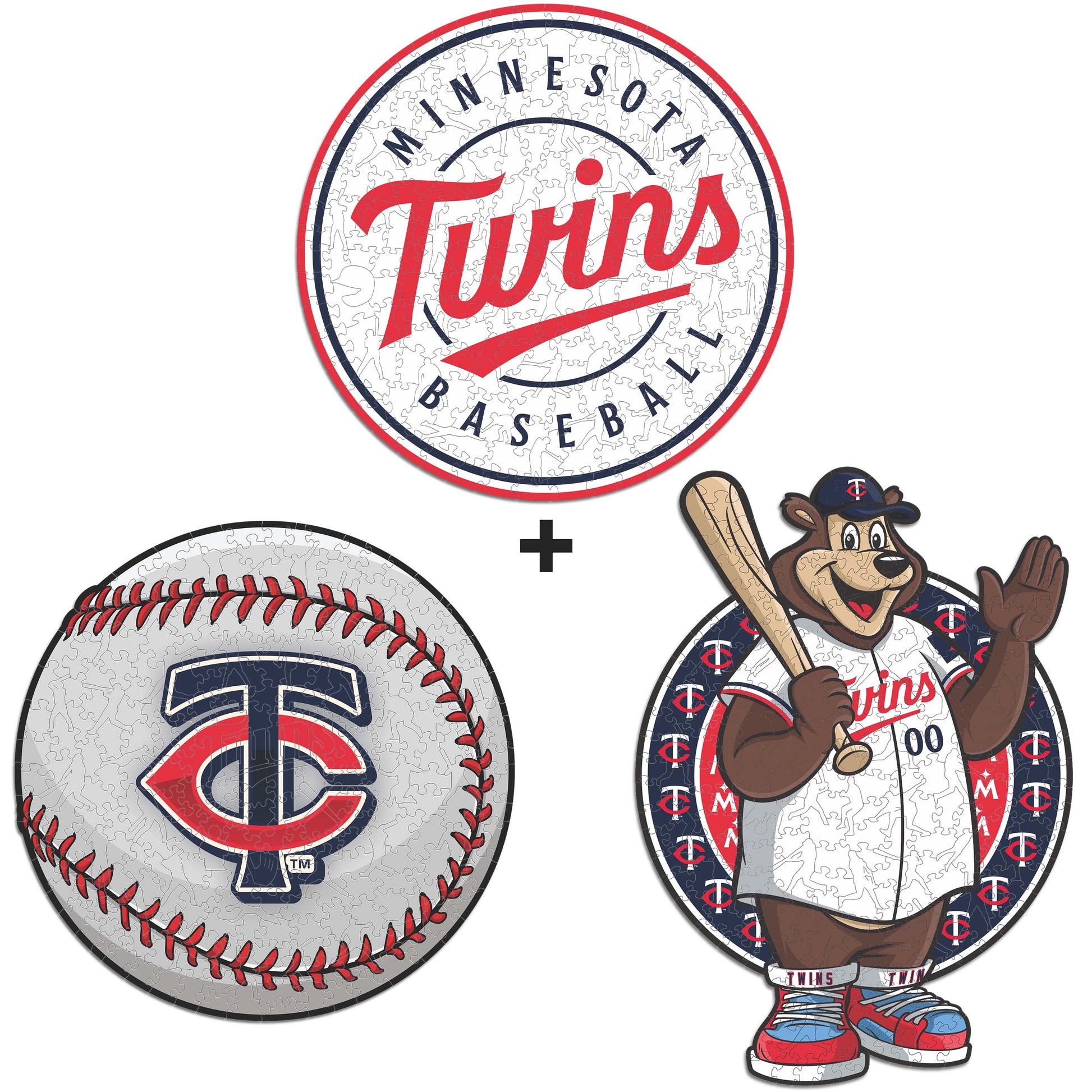 3x (Minnesota Twins™ Ball + Primary Logo + Mascot) Official Wooden Puzzles