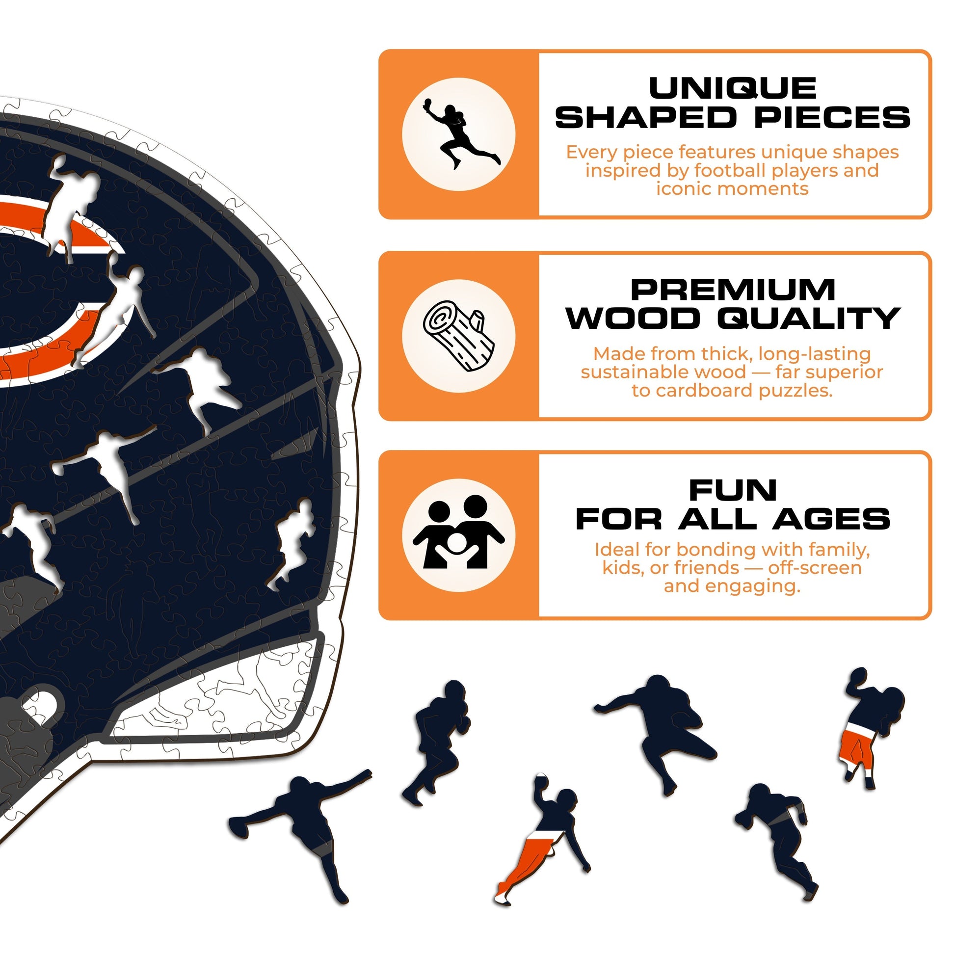 ✓ 1x Chicago Bears™ Helmet - NFL Official Wooden Puzzle
