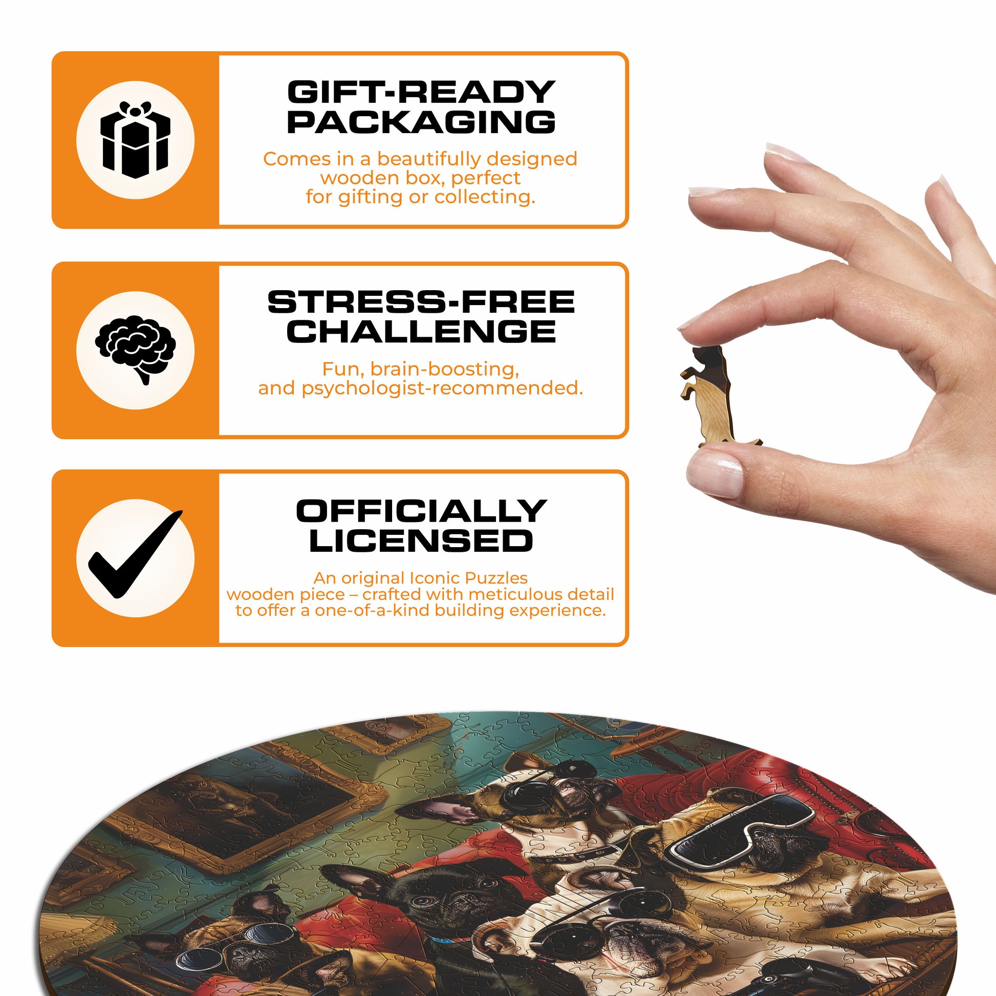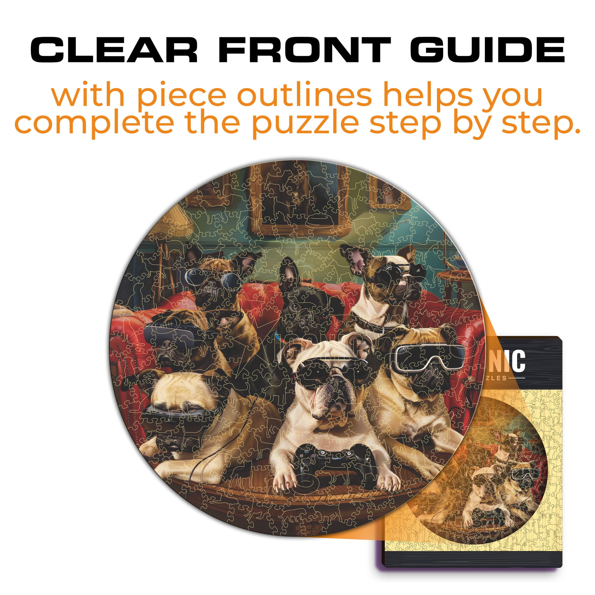 ✓ 1x Gamer Dogs- Official Wooden Box (featuring a printed guide on the front to help you complete the puzzle with ease)