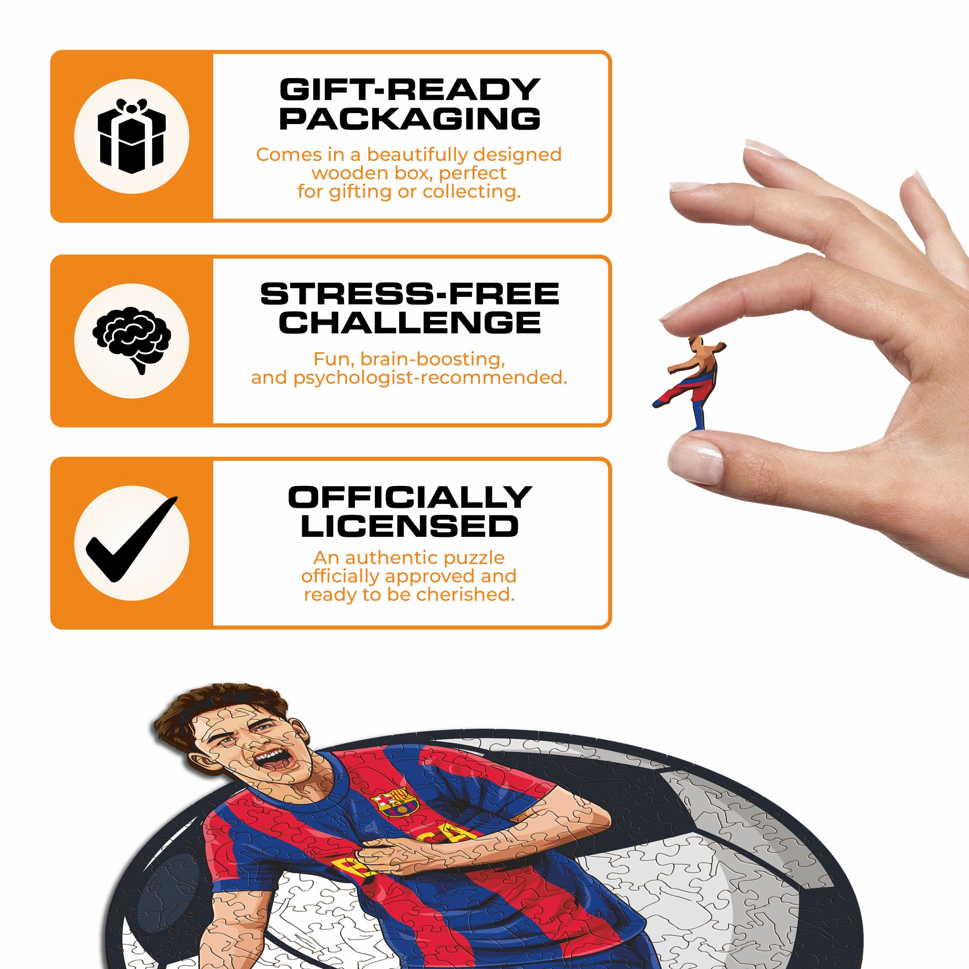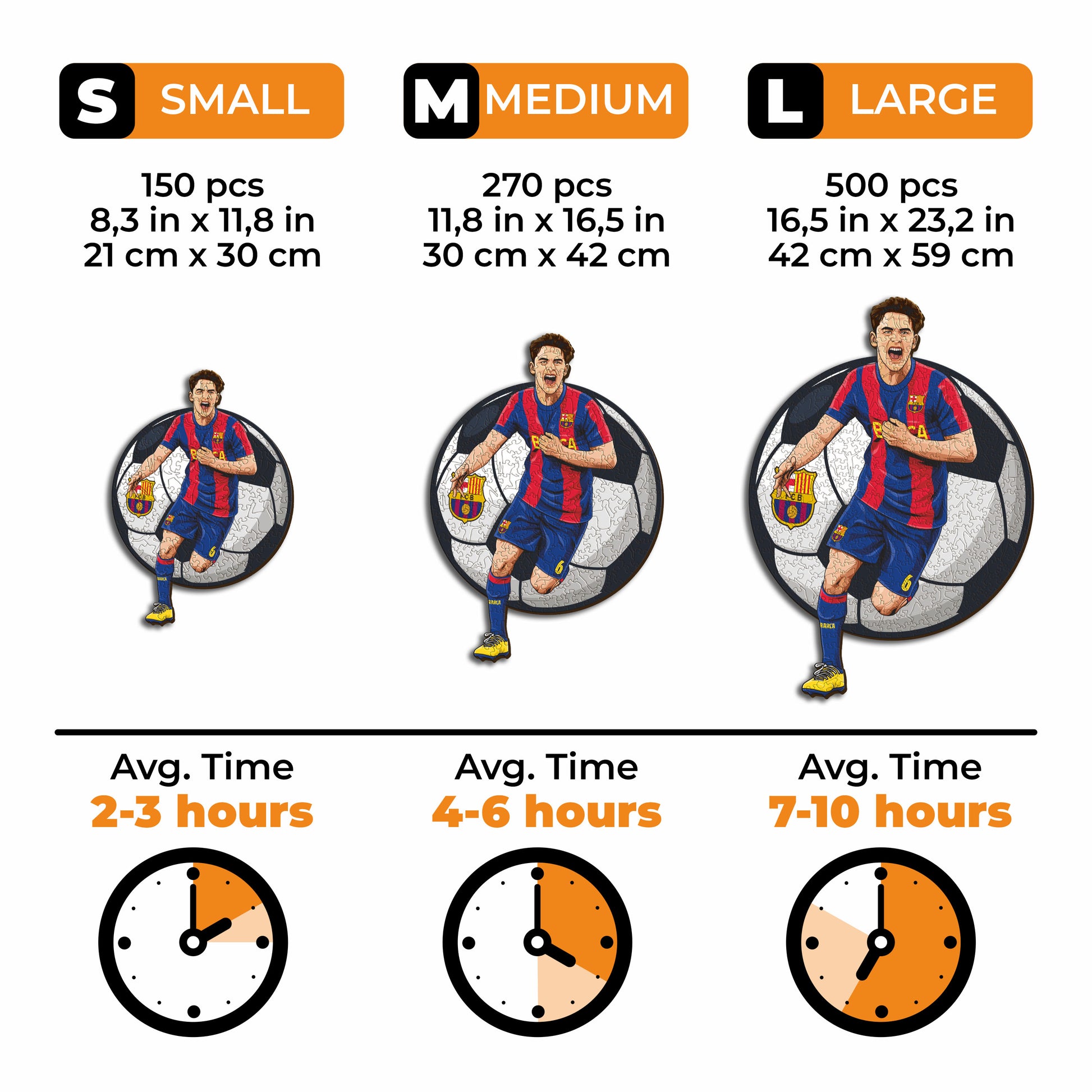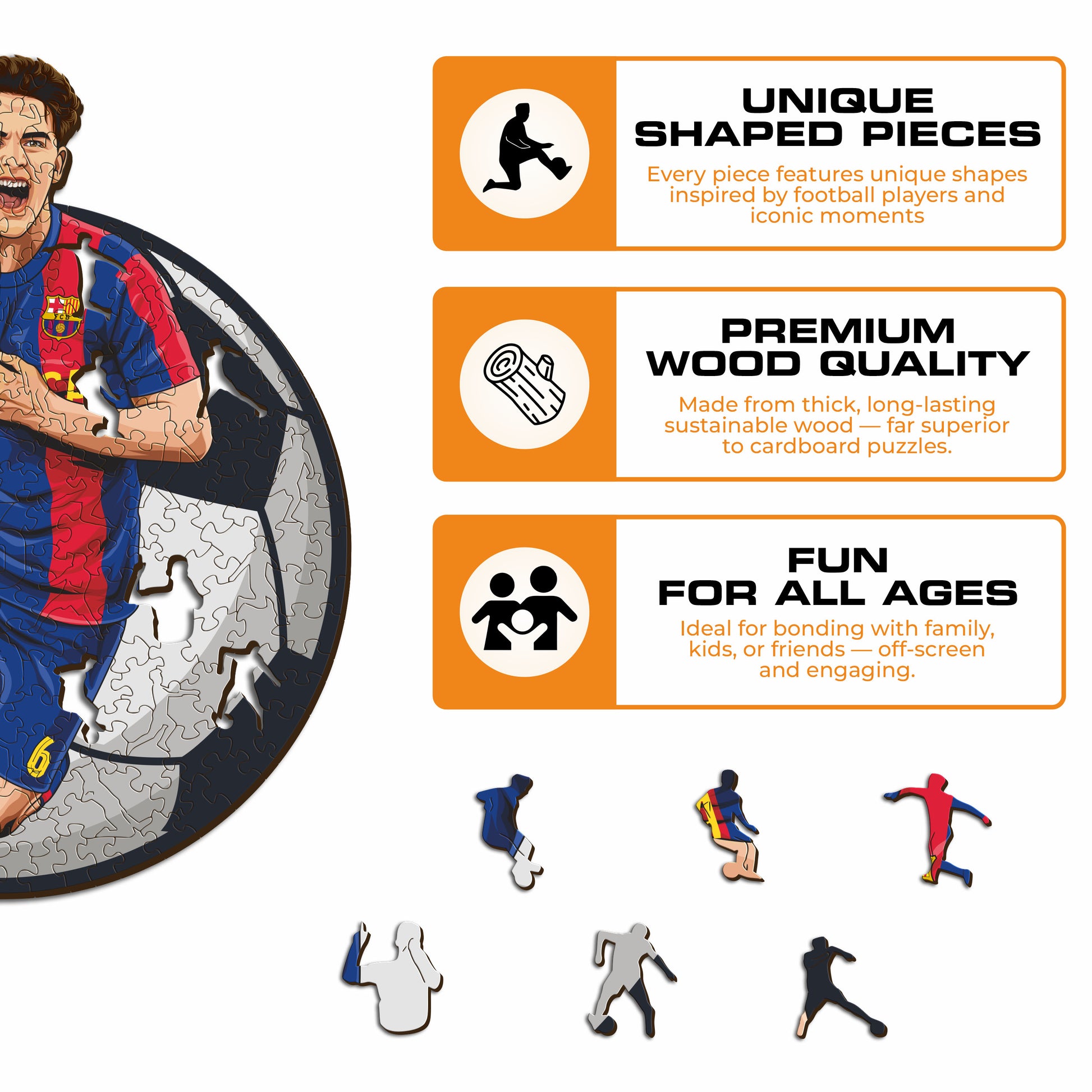 ✓ Each puzzle piece has a unique shape that depicts elements related to soccer and iconic player poses.