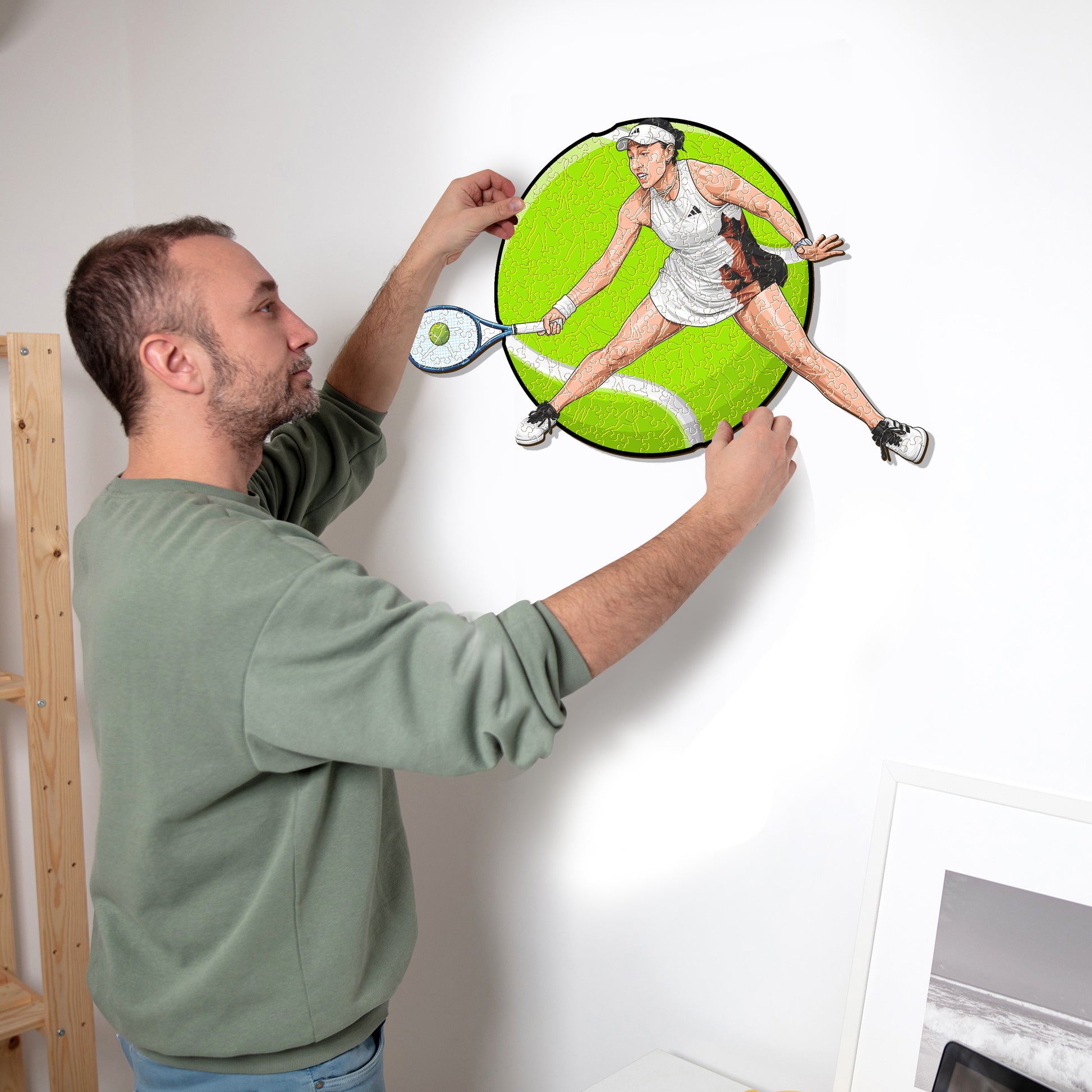 ✓ Each puzzle piece has a unique shape that depicts elements related to tennis and iconic player poses.