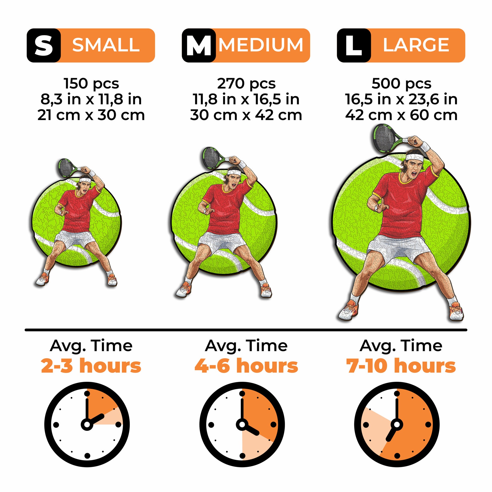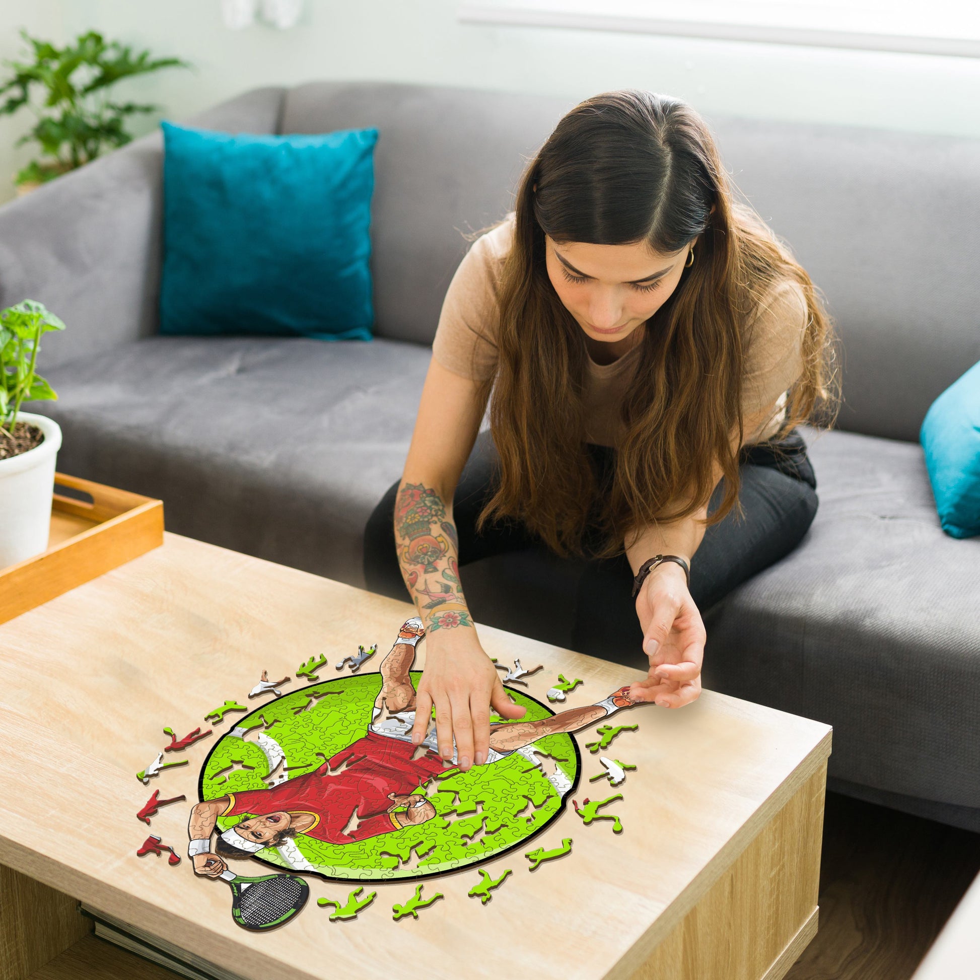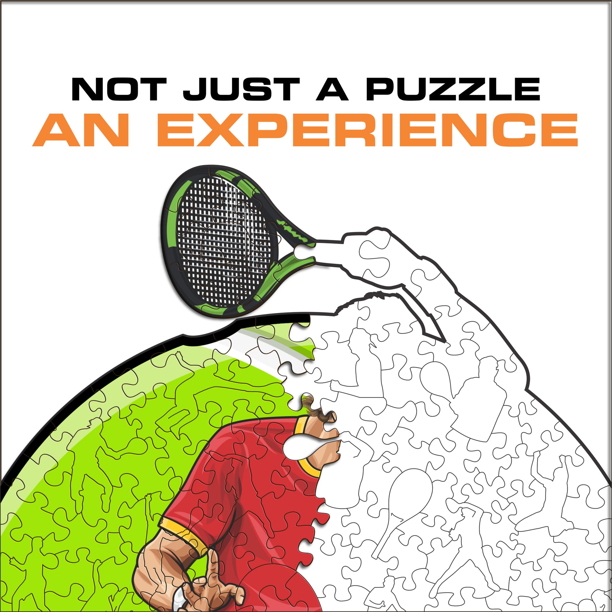 ✓ Each puzzle piece has a unique shape that depicts elements related to tennis and iconic player poses.