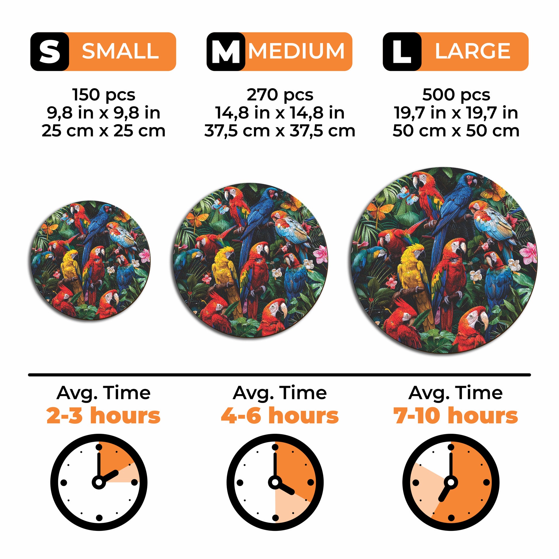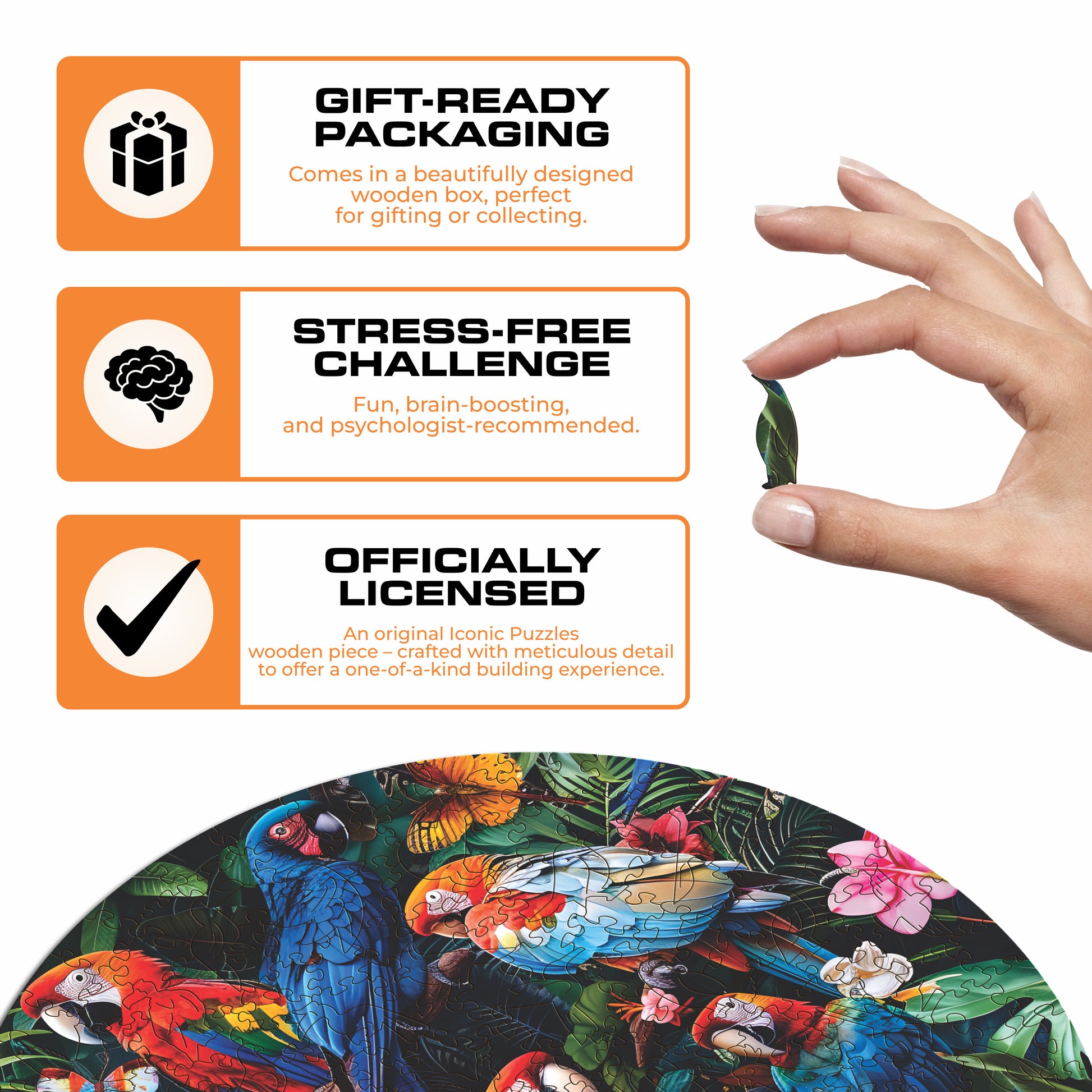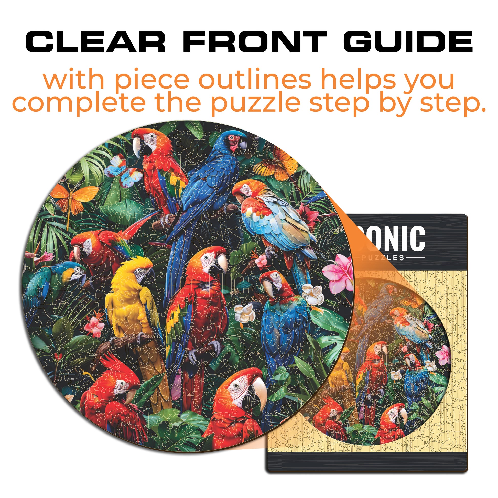 Papagaios Coloridos - Quebra-cabeça de Madeira