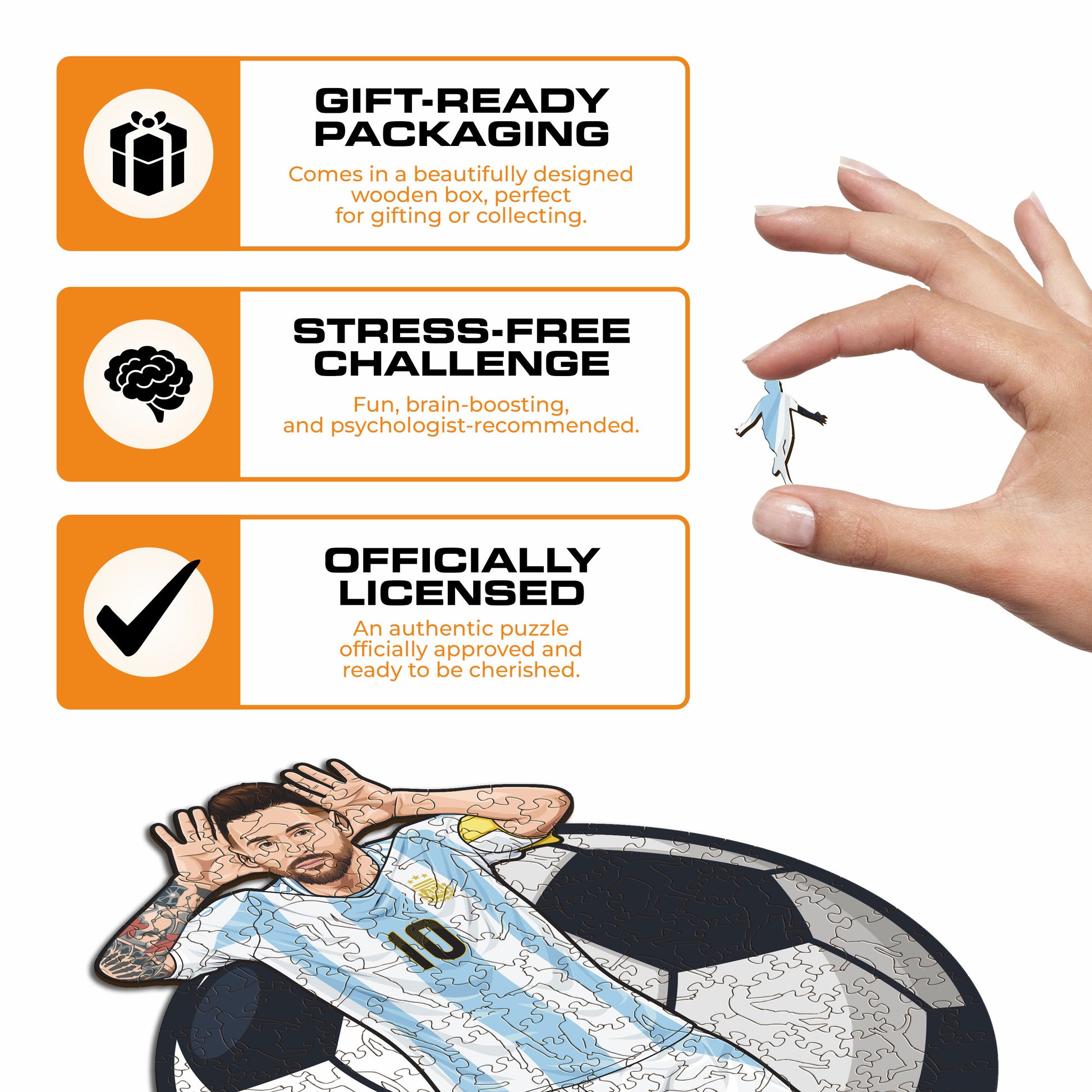 ✓ 1x quebra-cabeça oficial de madeira de Lionel Messi