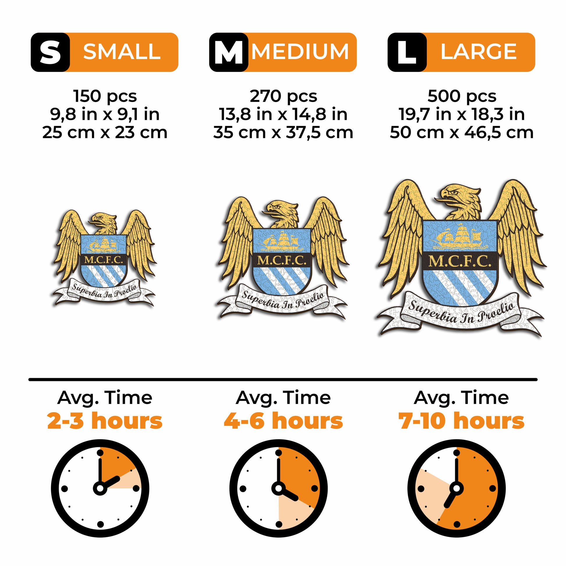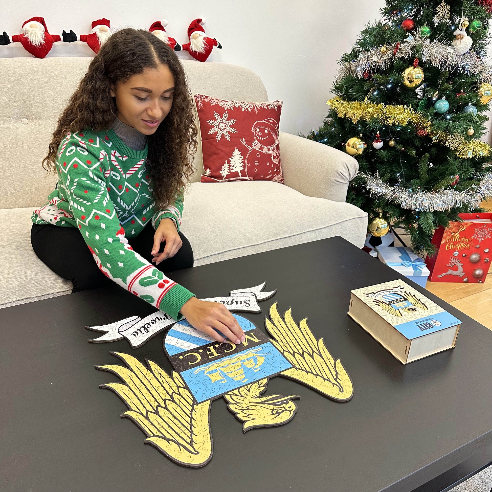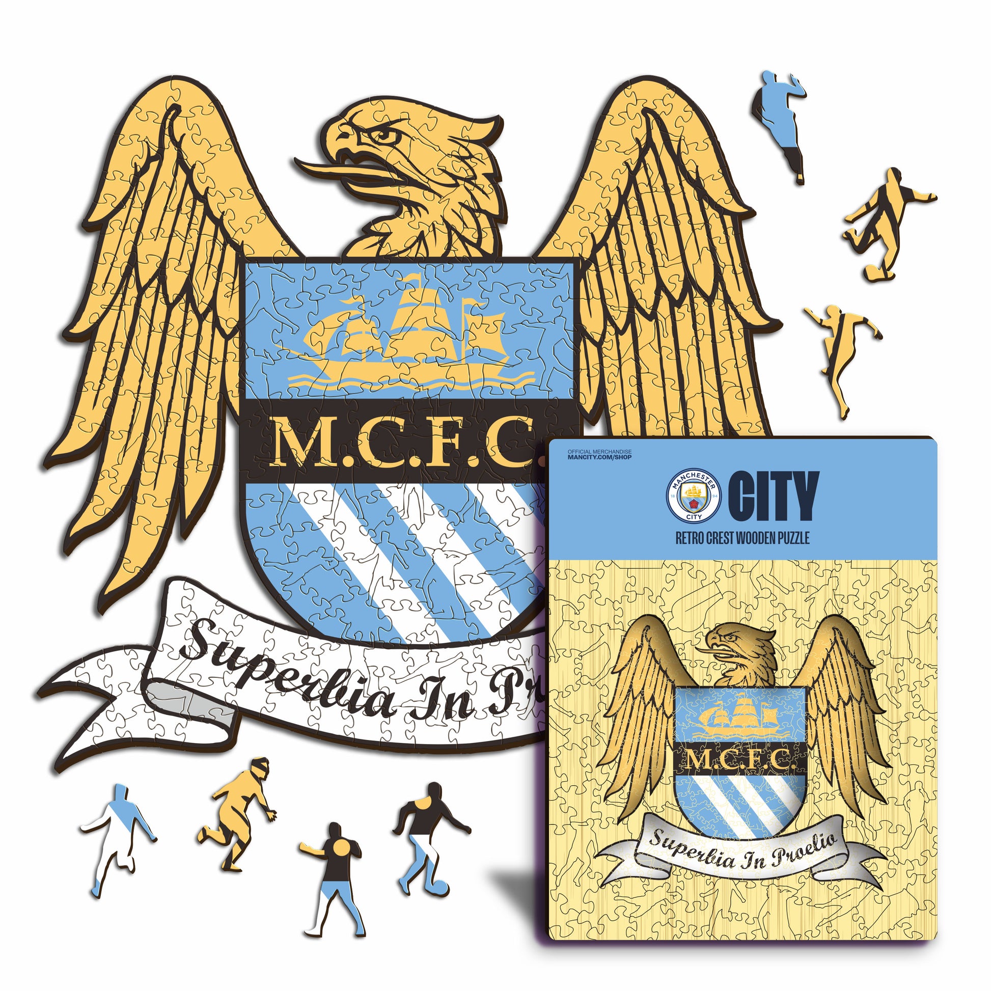 ✓ 1x Logotipo retrô do Manchester City FC® - Quebra-cabeça oficial de madeira