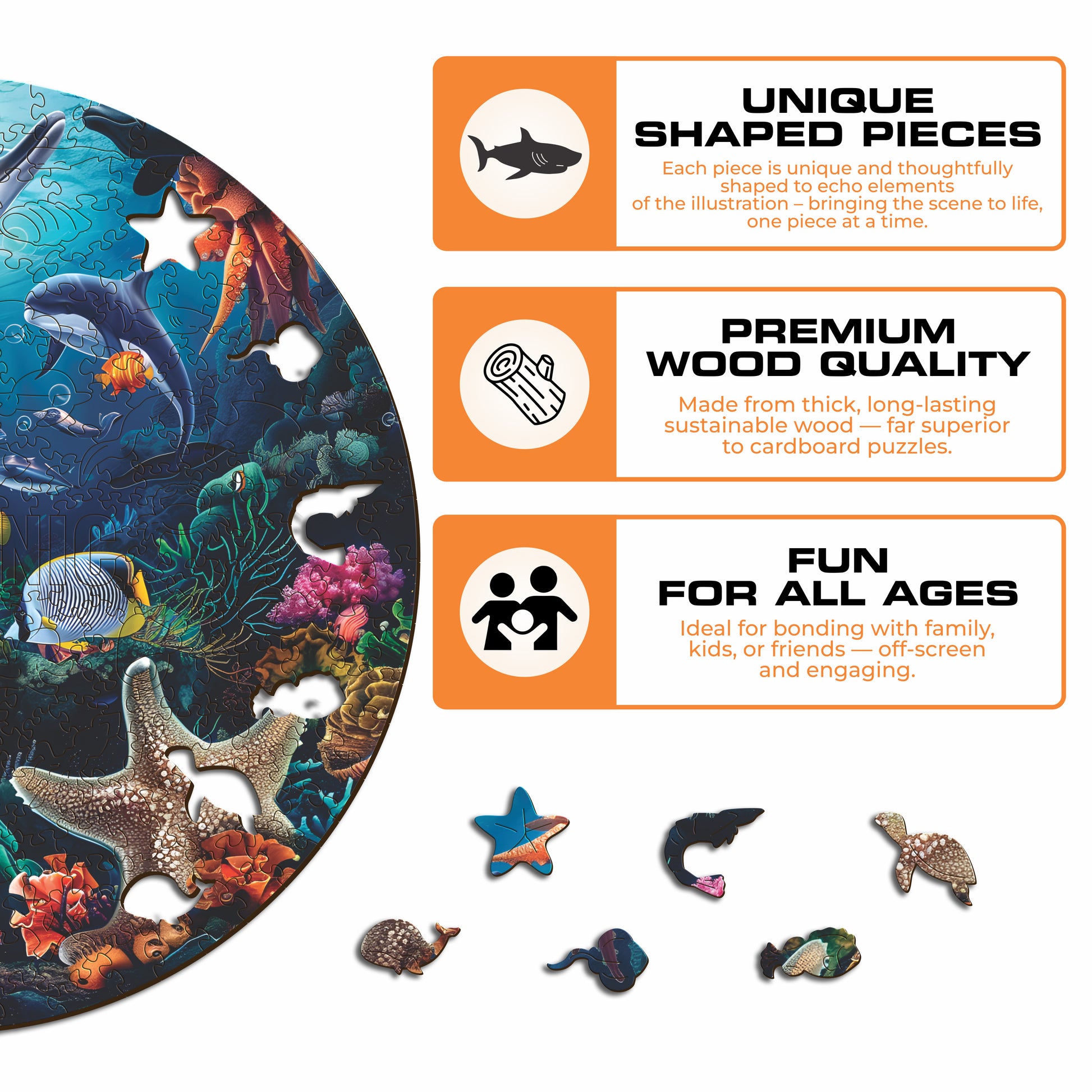 ✓ 1x Animais Marinhos - Quebra-cabeça de Madeira