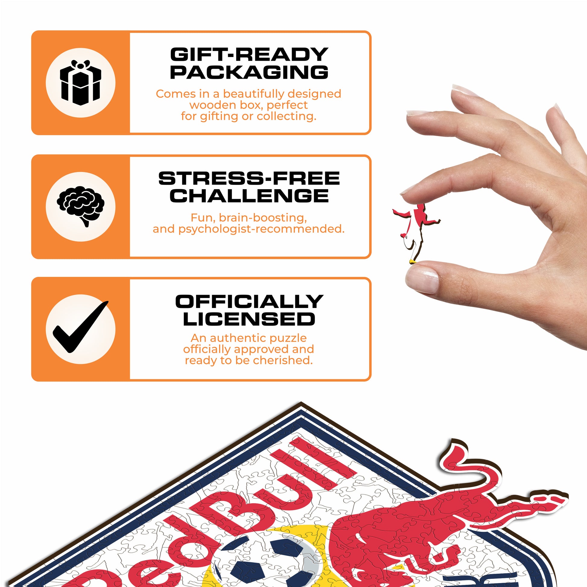 ✓ 1x Logotipo do New York Red Bulls® - Quebra-cabeça oficial de madeira
