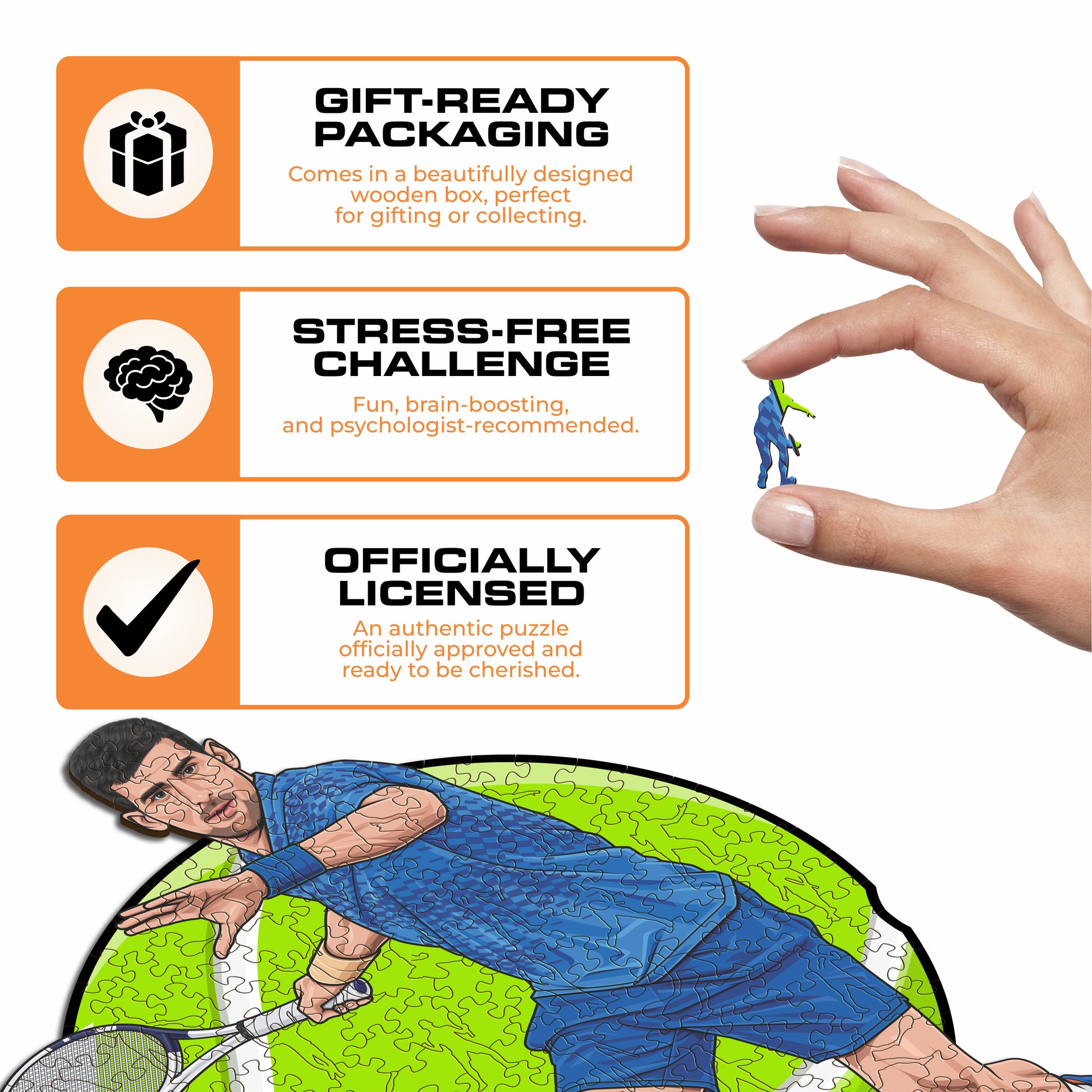 ✓ 1x Novak Djokovic - Puzzle oficial em madeira