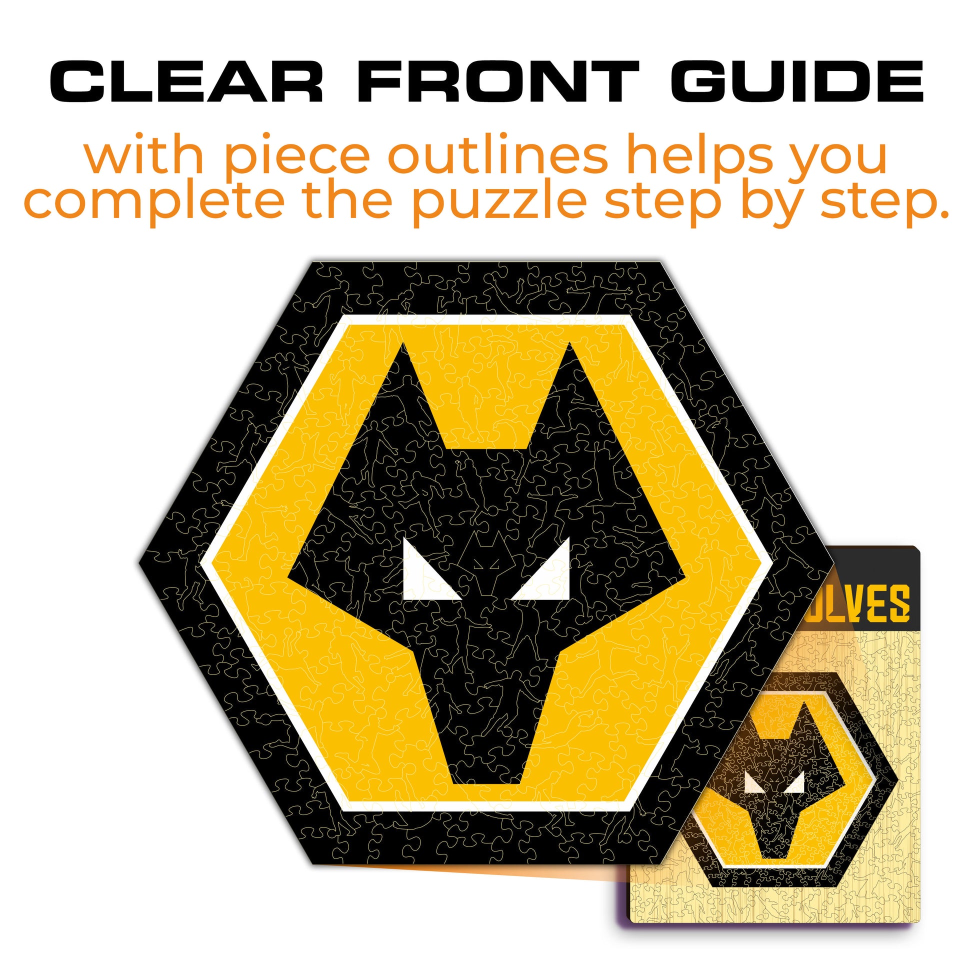 ✓ 1x Logotipo do Wolverhampton Wanderers FC® - Caixa de madeira oficial (apresentando um guia impresso na frente para ajudá-lo a completar o quebra-cabeça com facilidade)