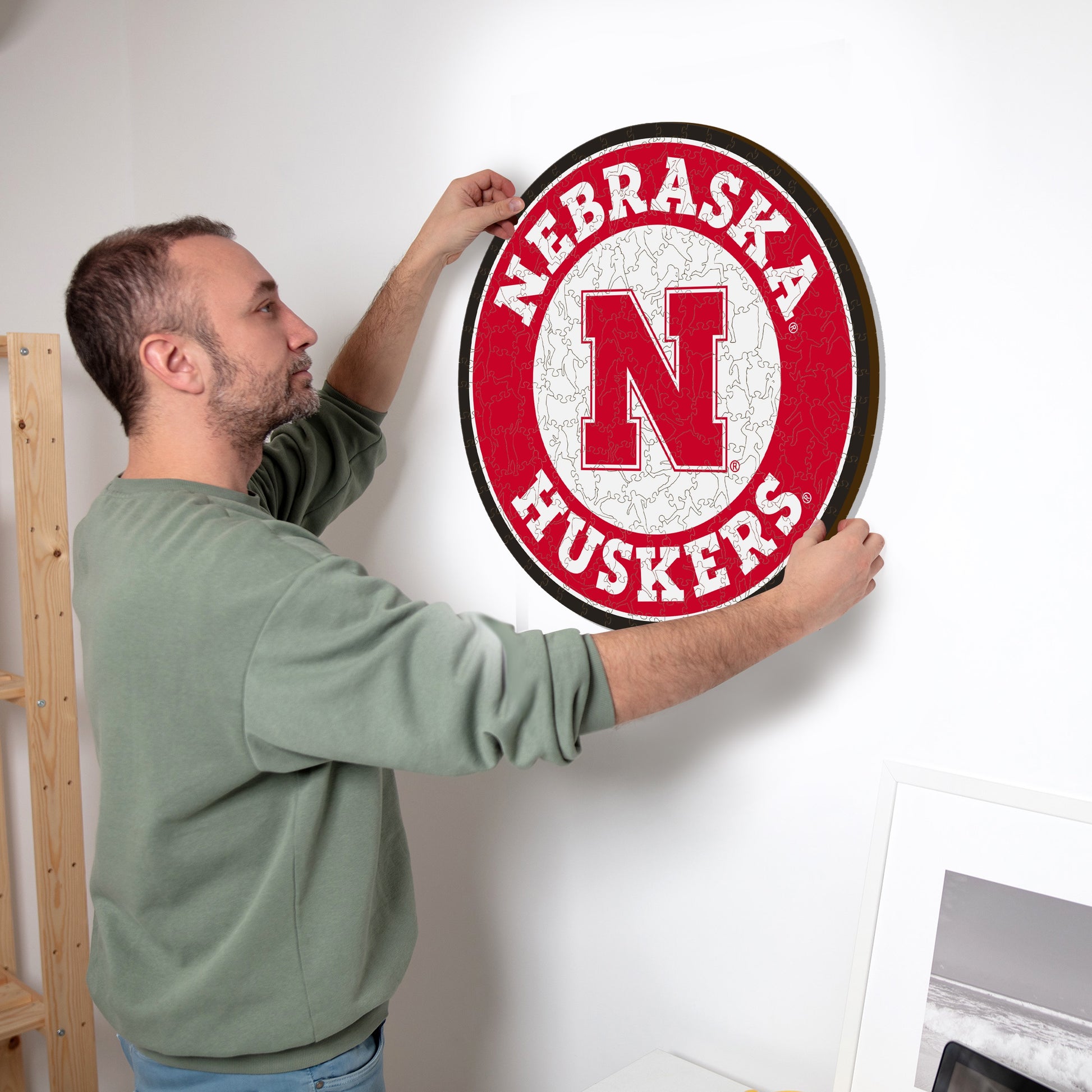 ✓ 1x Universidade de Nebraska - Quebra-cabeça de madeira oficial